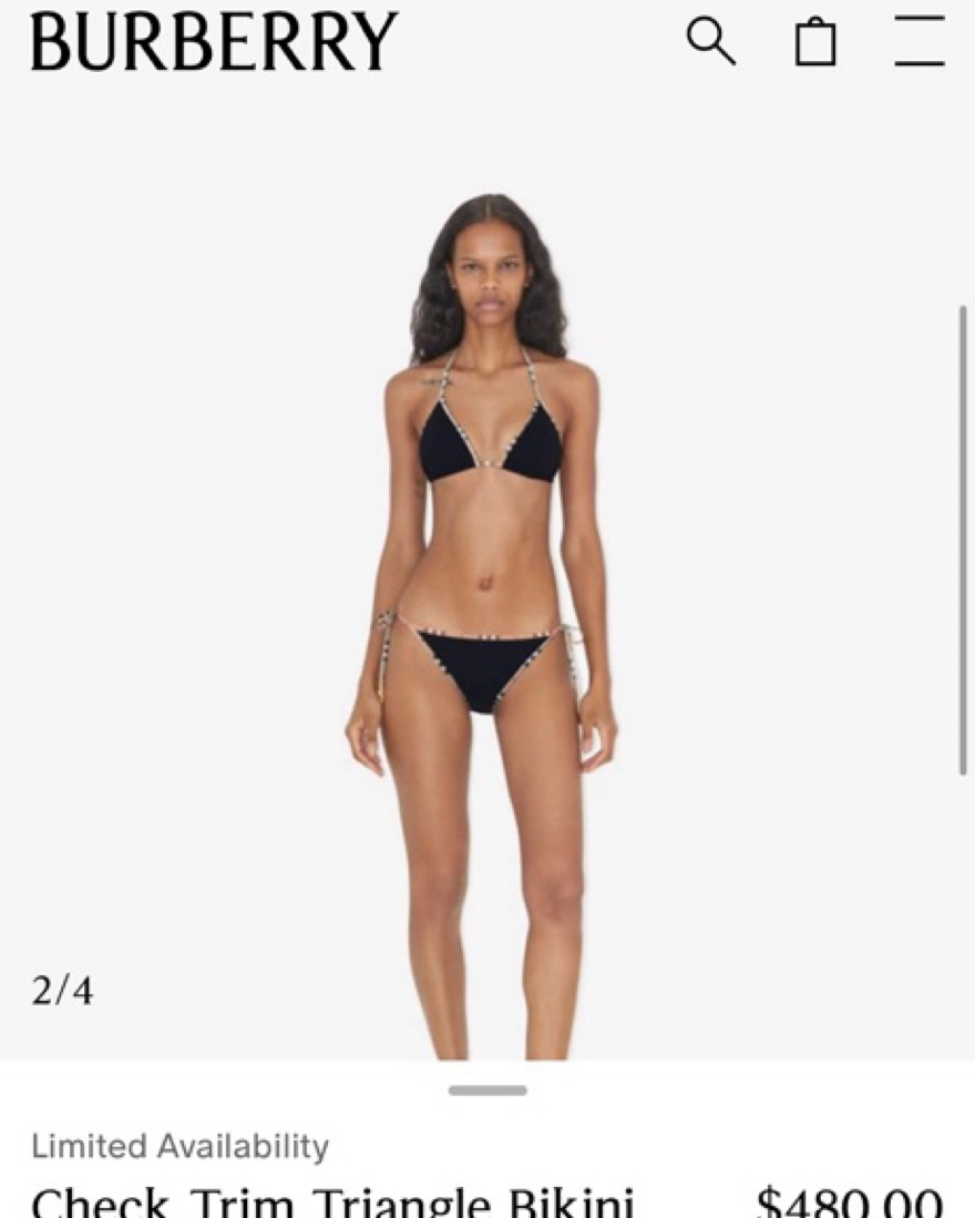 Burberry bikini in black. Size 6 but has fit me as a size 4 and currently as a size 2 very well. Pretty much could fit any size. You can clme try on. Designer. Vacation. Gucci. Prada. Loewe. Versace. Zimmerman. Fae. Triangl. Bathing suit.