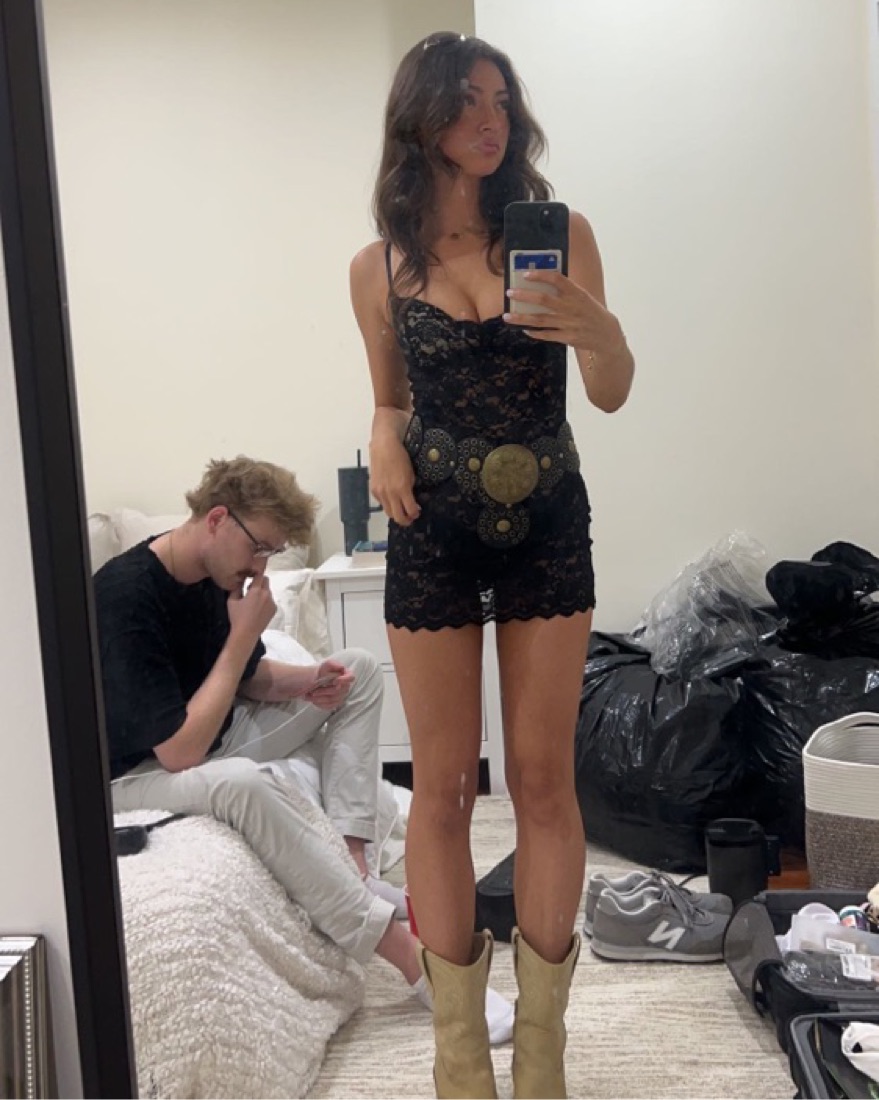 Black lace mini dress, super flattering and comfortable, does not ride up the back