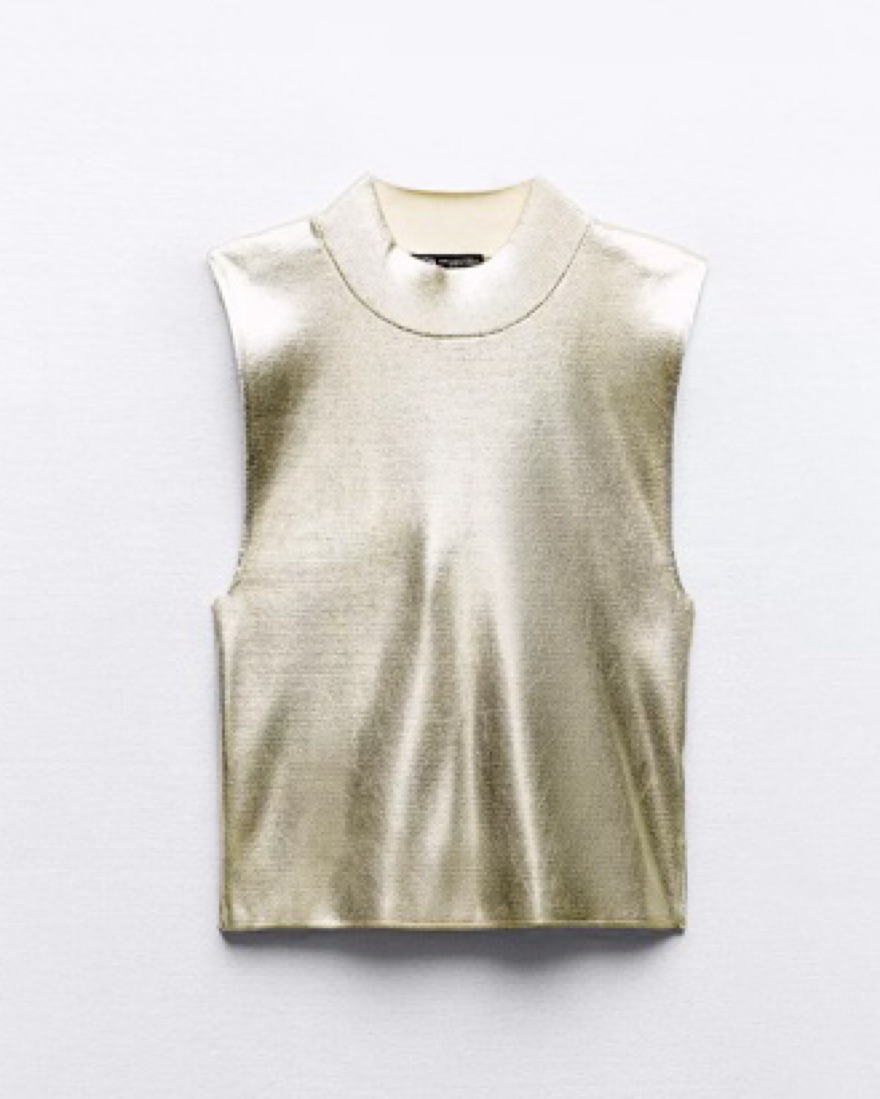 Gold Zara skirt set, stretchy material. Maxi skirt and mock neck top. Message me to rent separately!