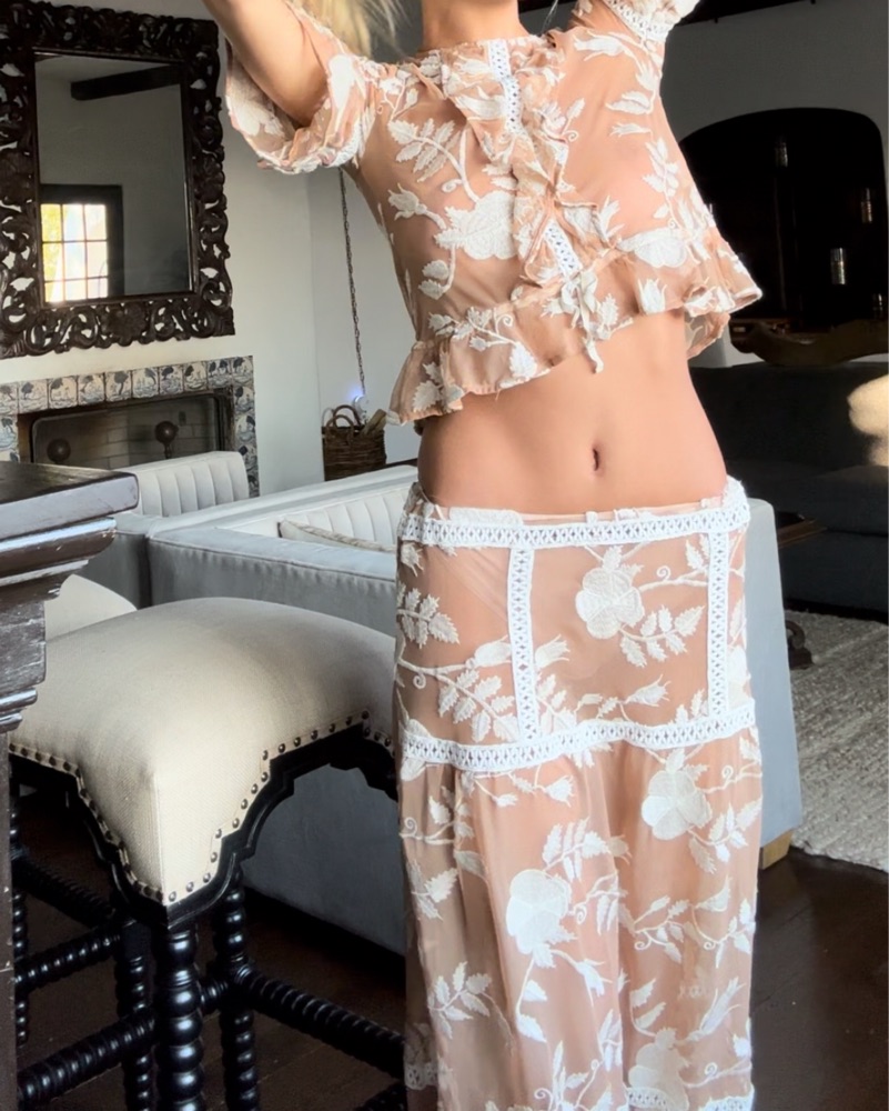 Maxi Skirt in XS. Perfect condition. Sheet. Sometimes I use the skirt on its own for a western look with boots! Matching set for weddings, parties, shoots. Sheer lace.
