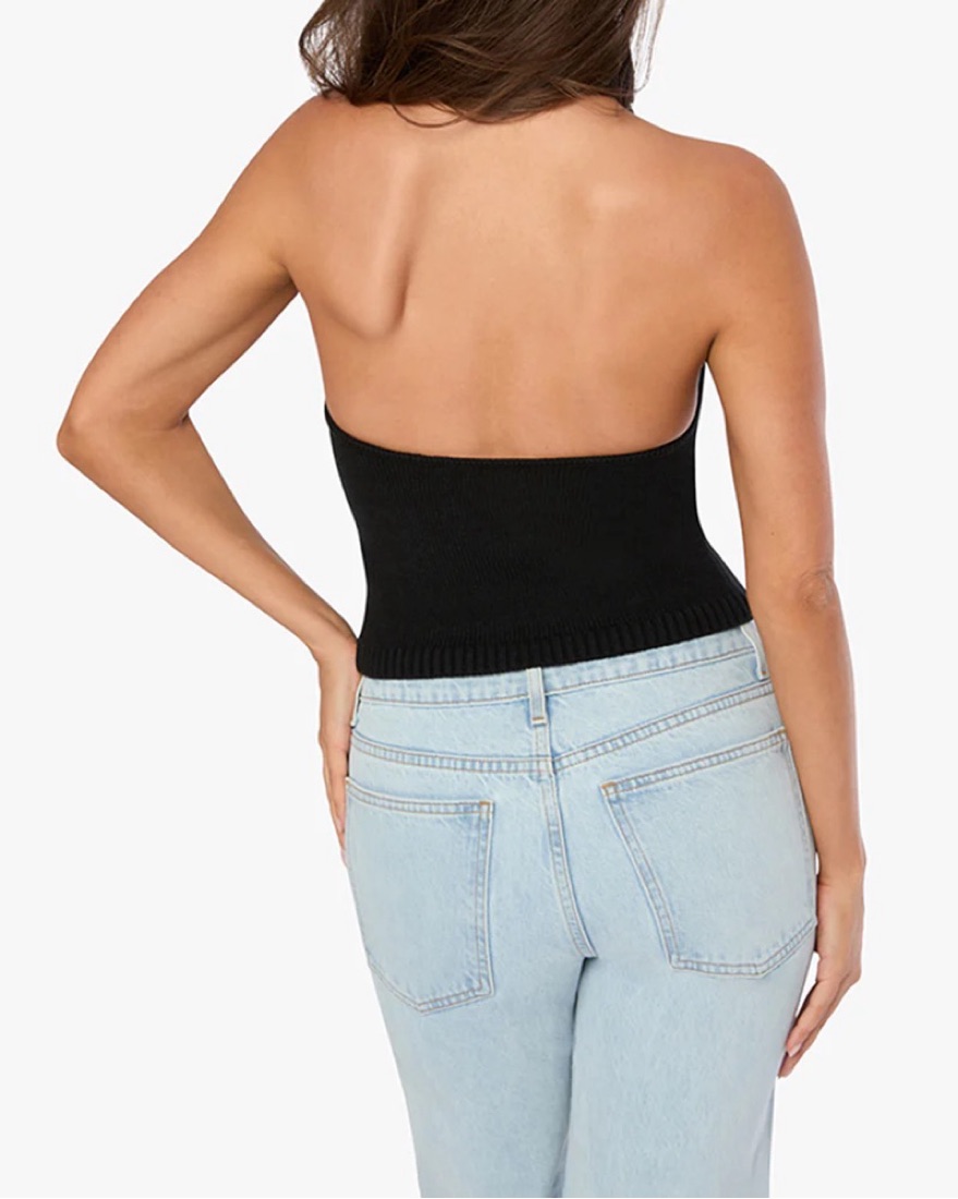 WeWoreWhat Open Back Halter Sweater Top by WeWoreWhat - Pickle
