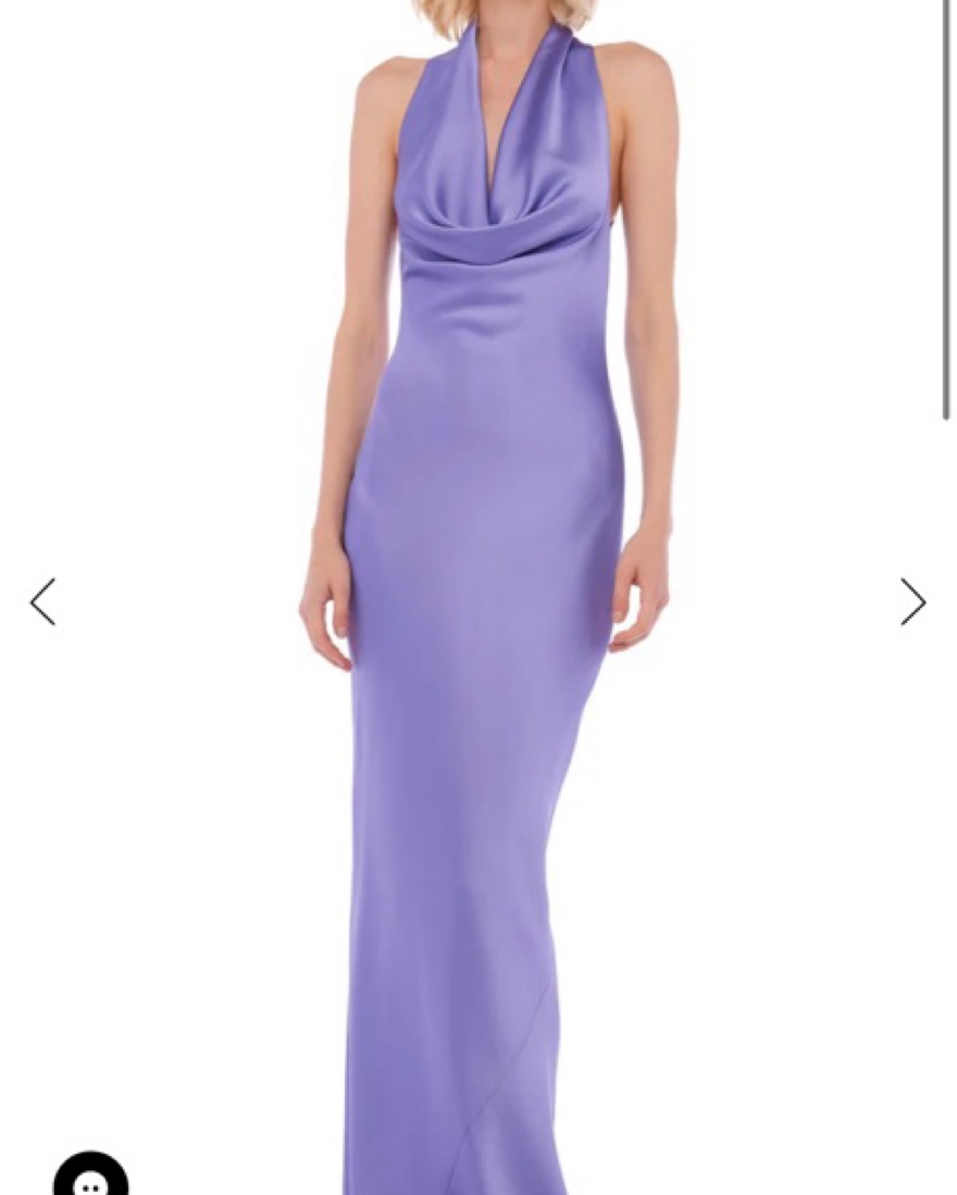Long purple silk feel gown with halter neck. Worn once
