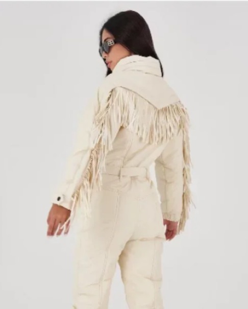 *fridge attachment are missing*. Color is Ivory labeled as a Large which fits like a medium (sizes 4-6) as per the size chart in the photos. Chest girth 96-99 cm / 37.79" - 38.97" Hip girth 100-103 cm / 39.37" - 40.55" - Hood is hidden in the collar