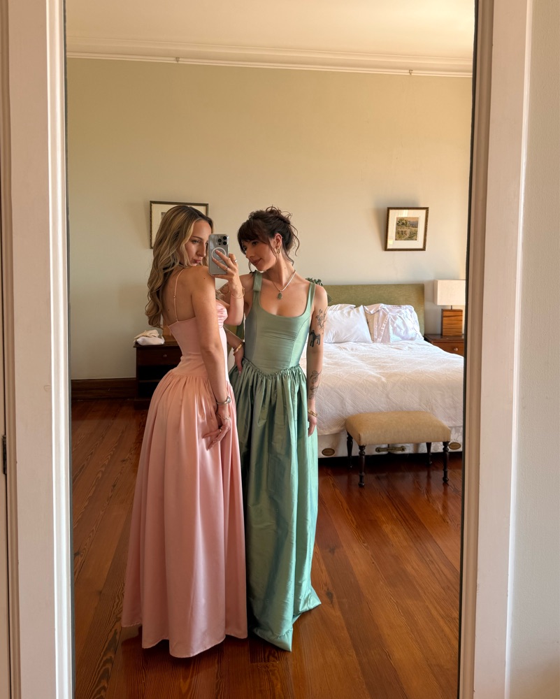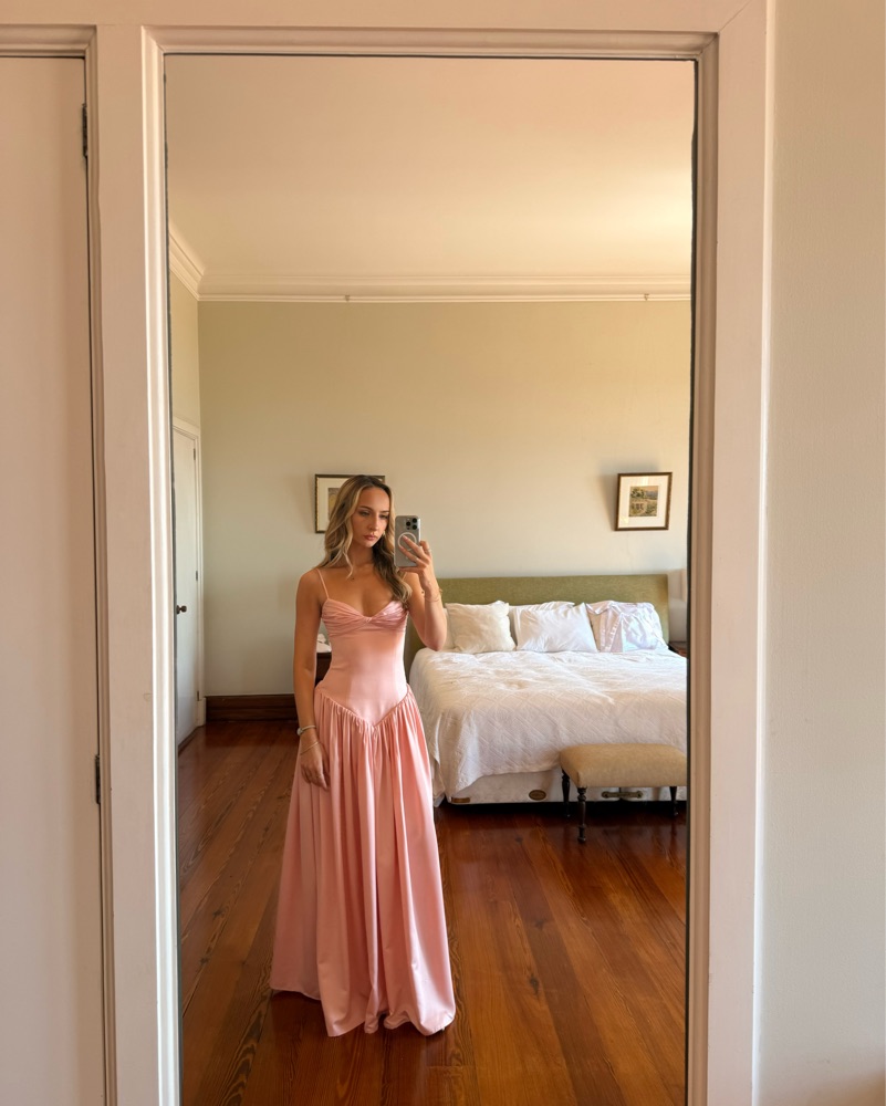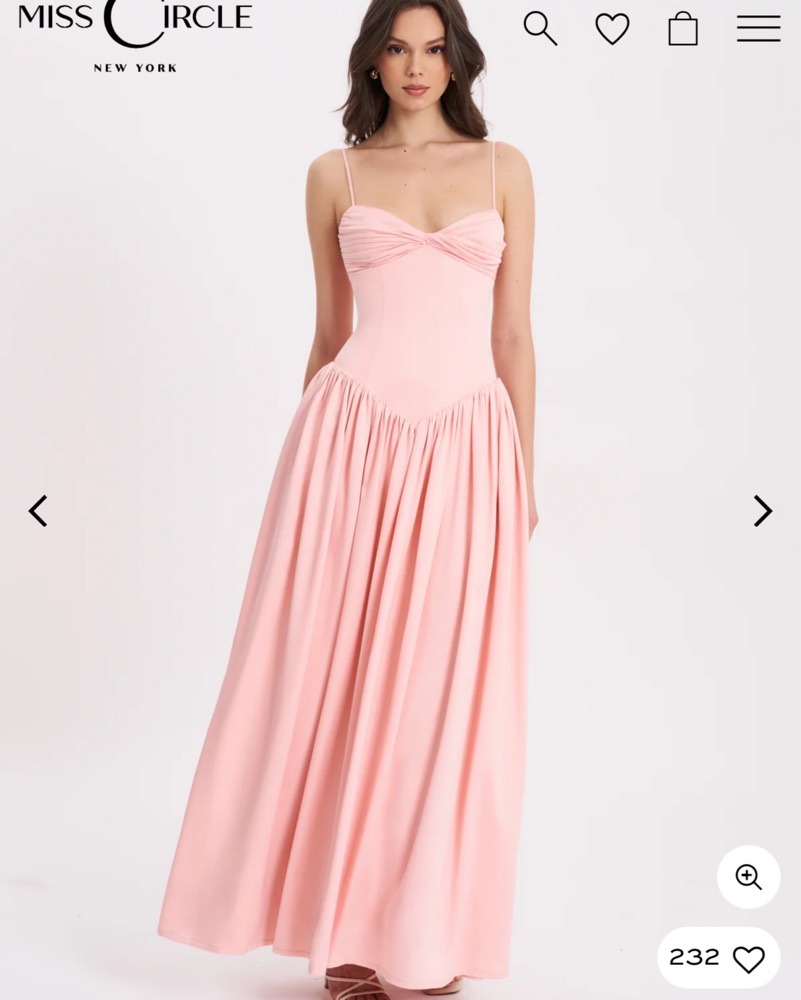 The most perfect dress! Najwa Baby Pink Ruched Breast Drop Waist Maxi Dress from Miss Circle New York. Worn once. Has been altered to fit me length wise at 5 ft 5 in tall. Size XXS(0)