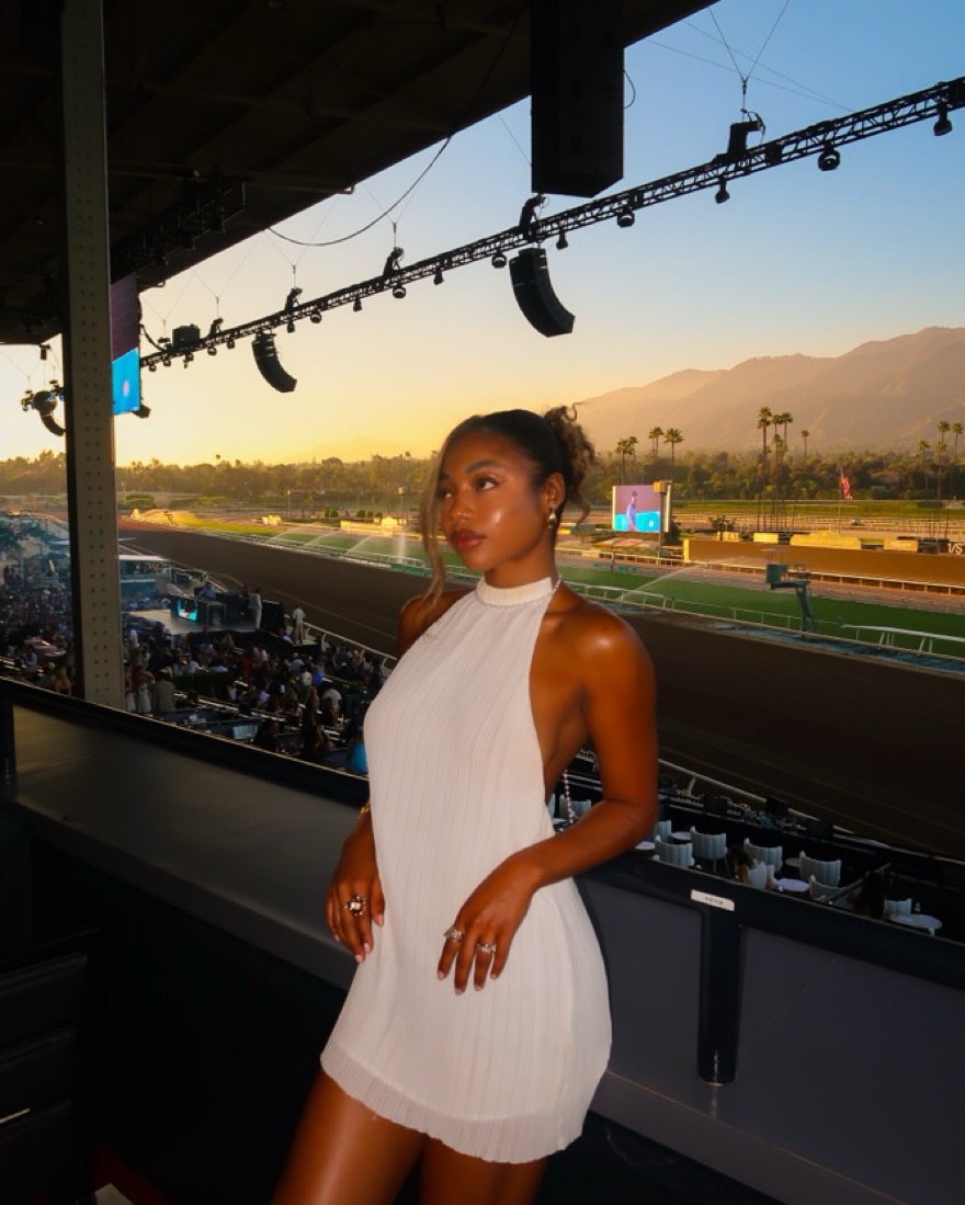 worn twice. This stylish white pleated mini dress is perfect for a chic evening out. Its halter neckline and open back design create a flattering and feminine silhouette. Gets makeup on neckline super easily so it’s very easy to stain.