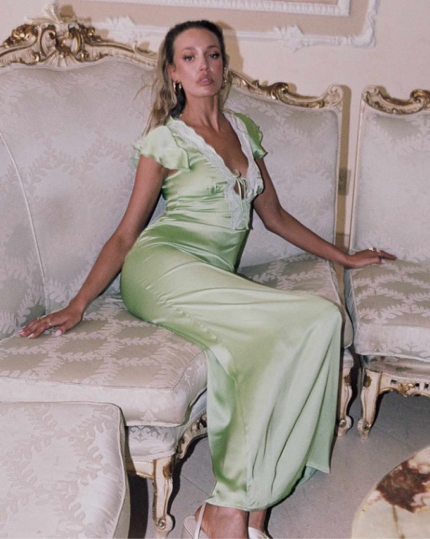 Armas Lace Trim Maxi Dress - Size 4 (US) by Princess Polly - Pickle