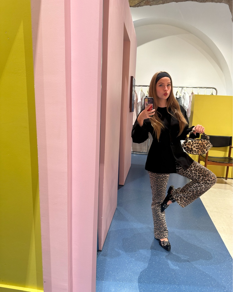 They are the cutest cropped leopard jeans in a size 25. They are the perfect statement look, they are full length on me because i’m 5’1!