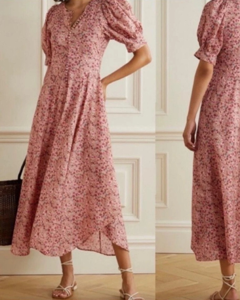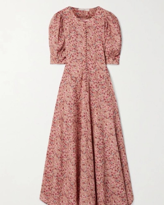 Pink floral midi dress by Doen!