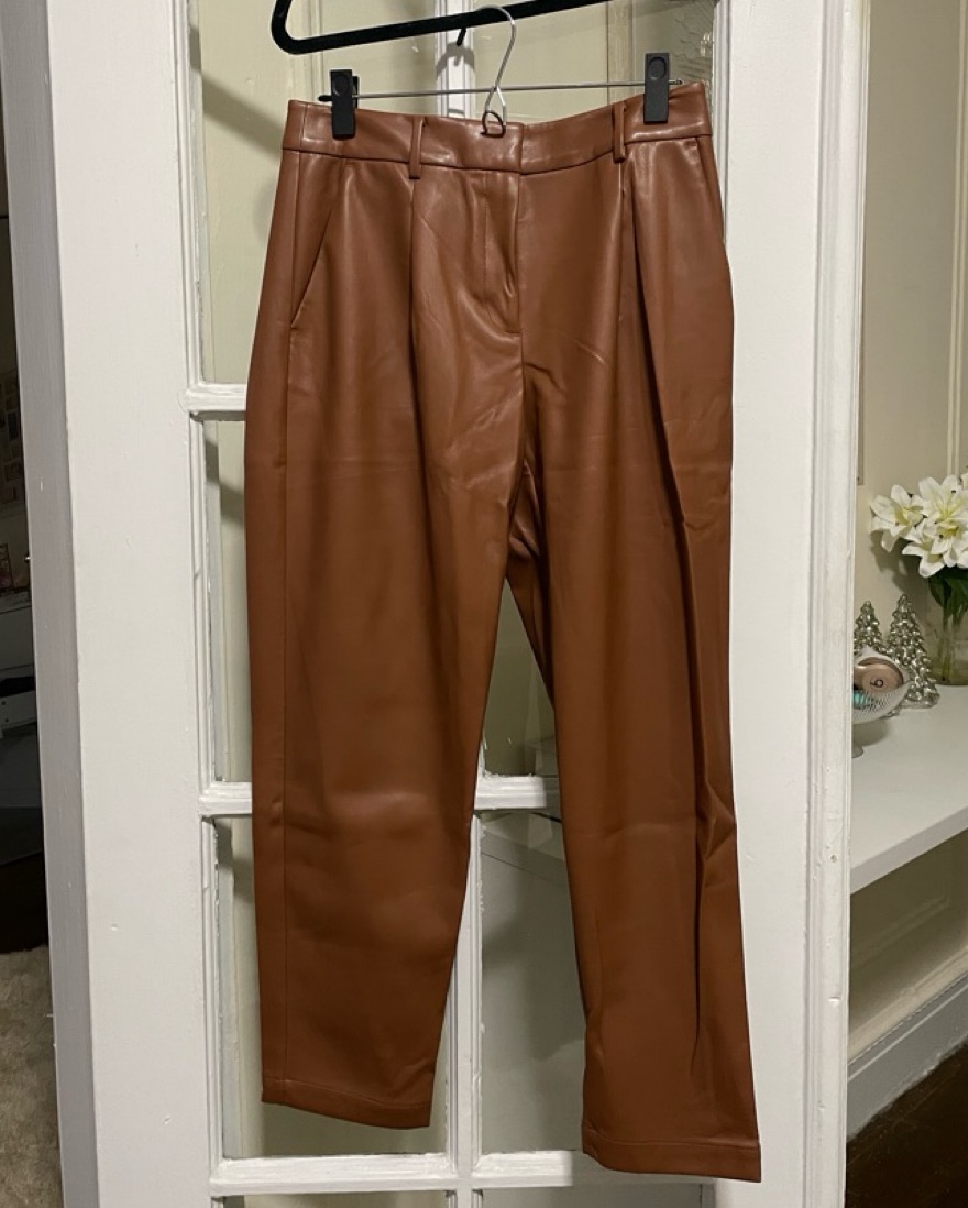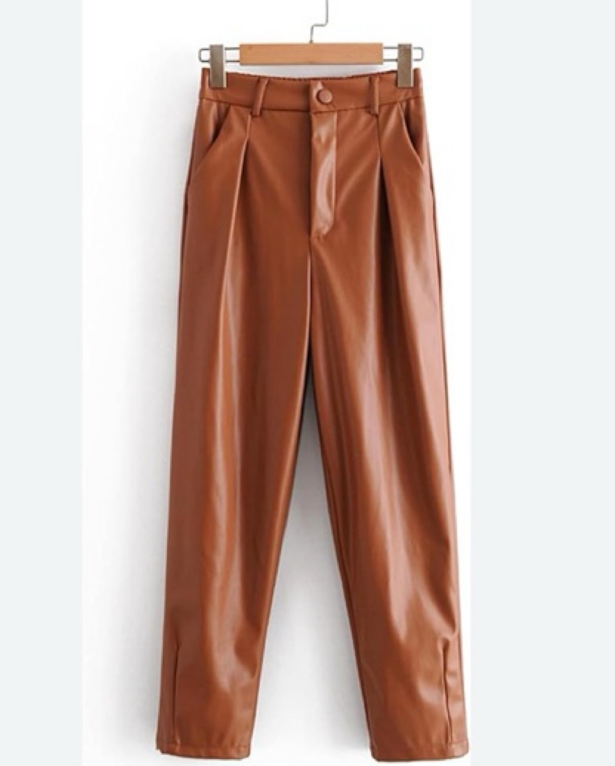 Faux Leather Tan Brown Tailored Pants