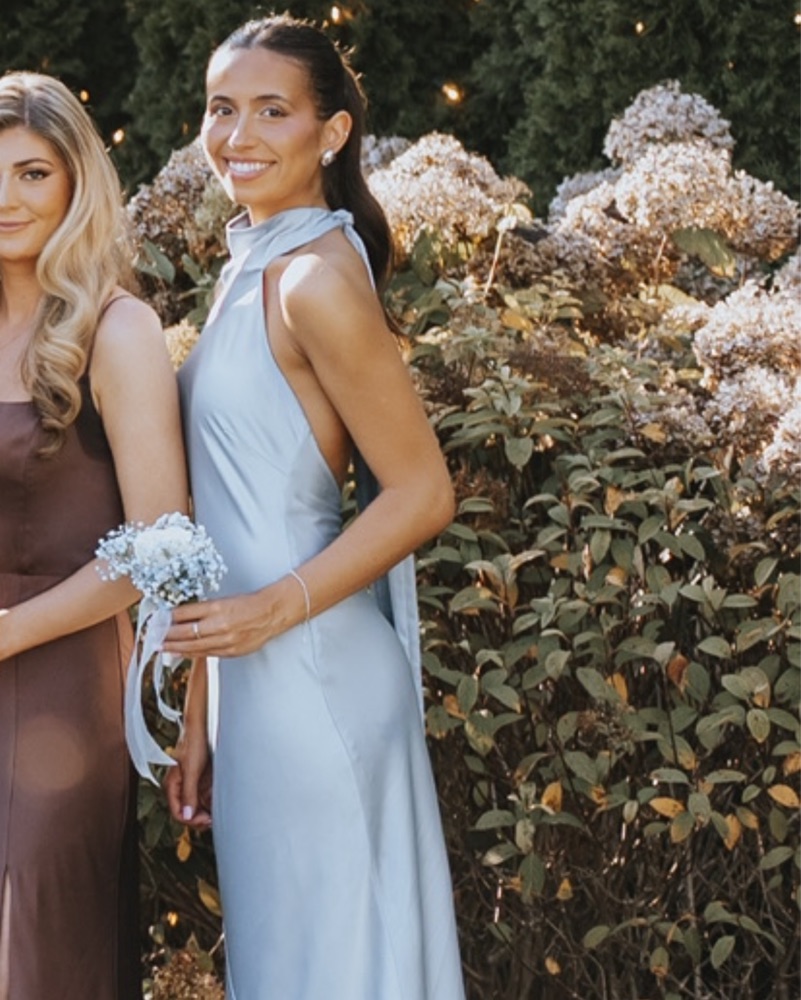 Satin mock neck halter dress - perfect for bridesmaid dress
