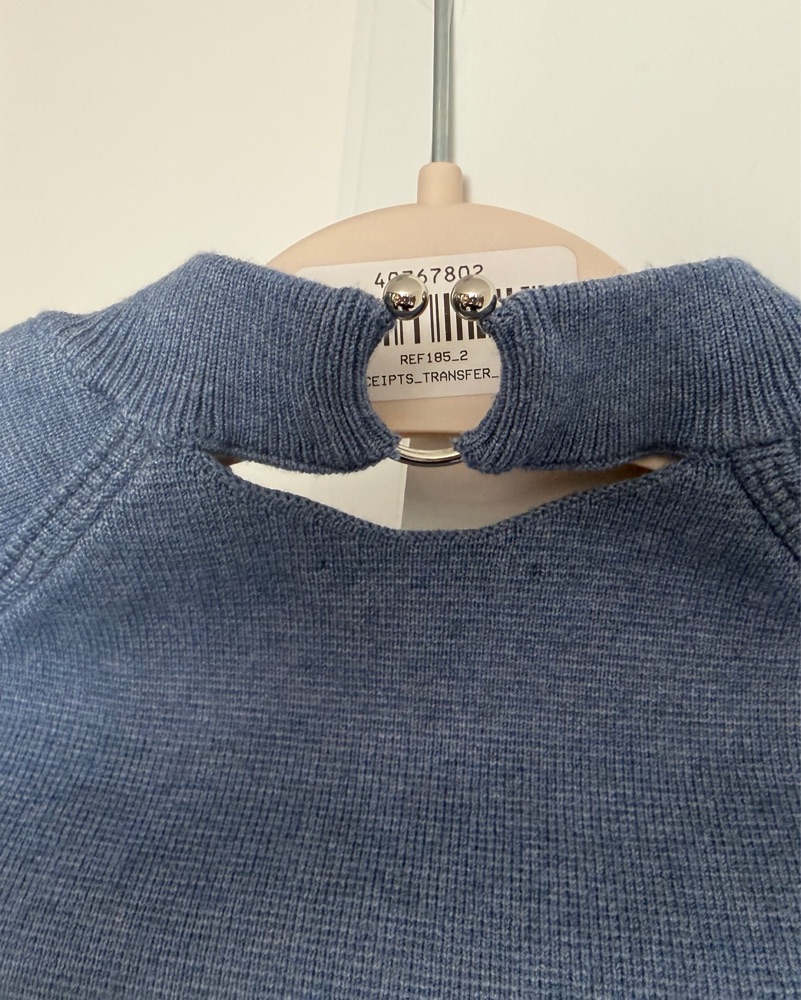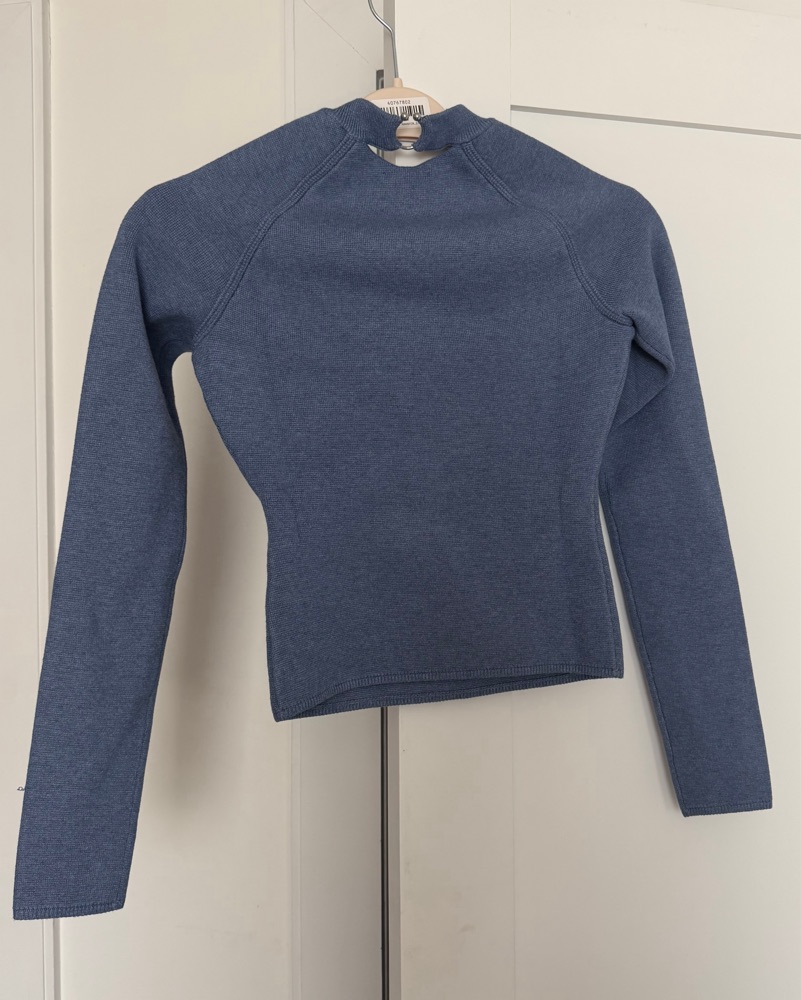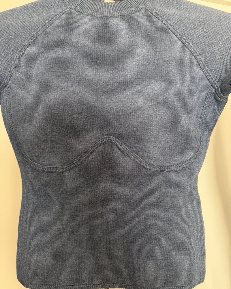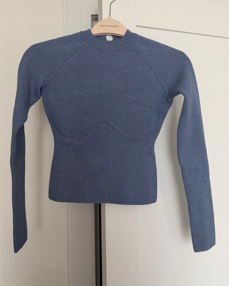 Fleur du Mal Knit Underbust Long Sleeve Top in charcoal blue, crafted from a luxe stretch knit. Designed with a sculpted underbust detail that extends into the sleeves, creating a flattering and elevated silhouette. Hits at the natural waist.
