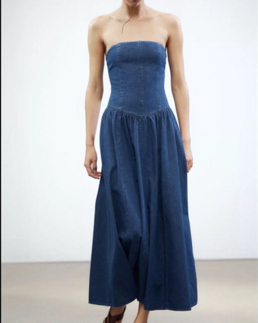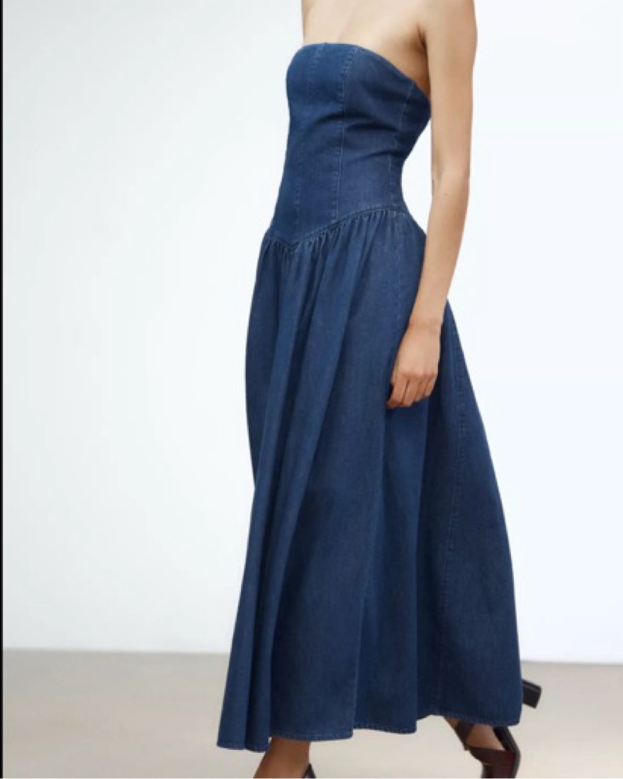 Zara denim strapless midi dress