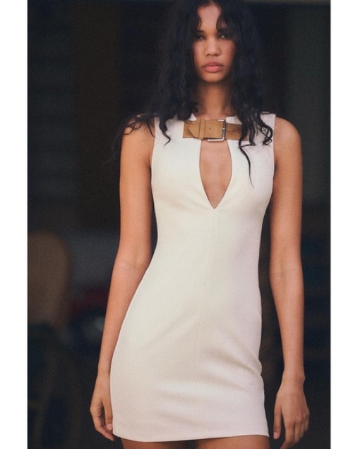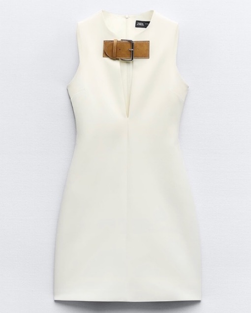 New with tag Brand Zara Zara S/S ‘24 collection This item runs small Tailored mini dress. Sleeveless with round collar and V-front with contrast belt with metal buckle. Tonal interior lining. Back hidden inseam zip closure.