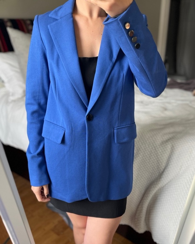 Oversized cobalt blue blazer with front pockets and one button. Beautiful condition