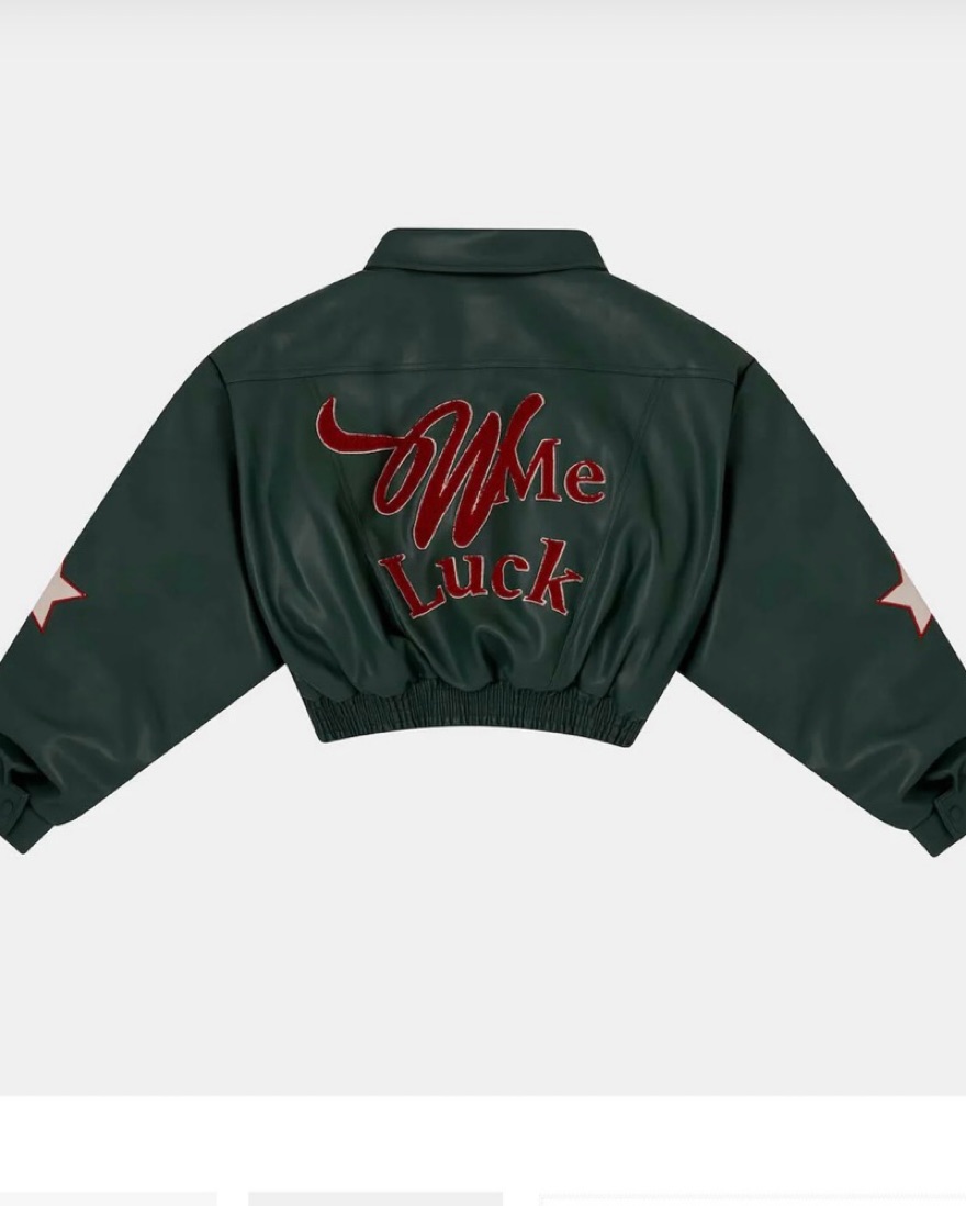 Wish Me Luck Green Cropped Bomber Jacket by Wish Me Luck - Pickle