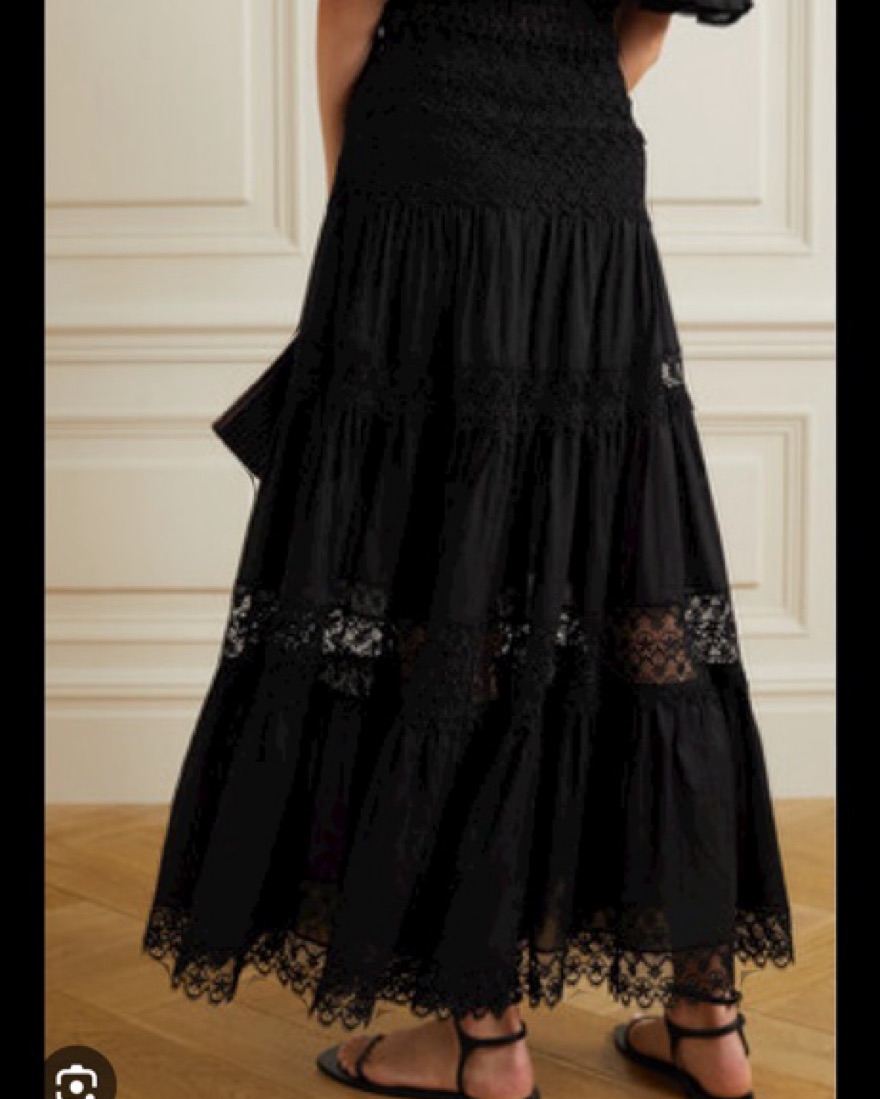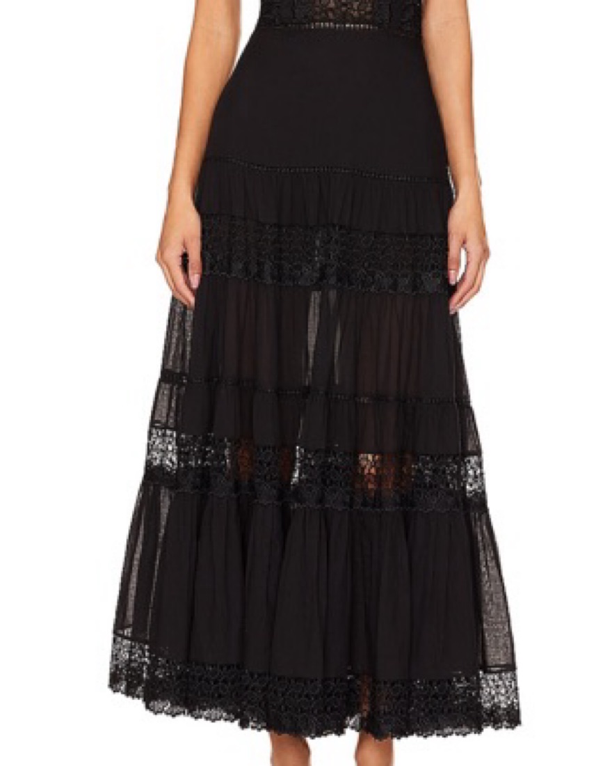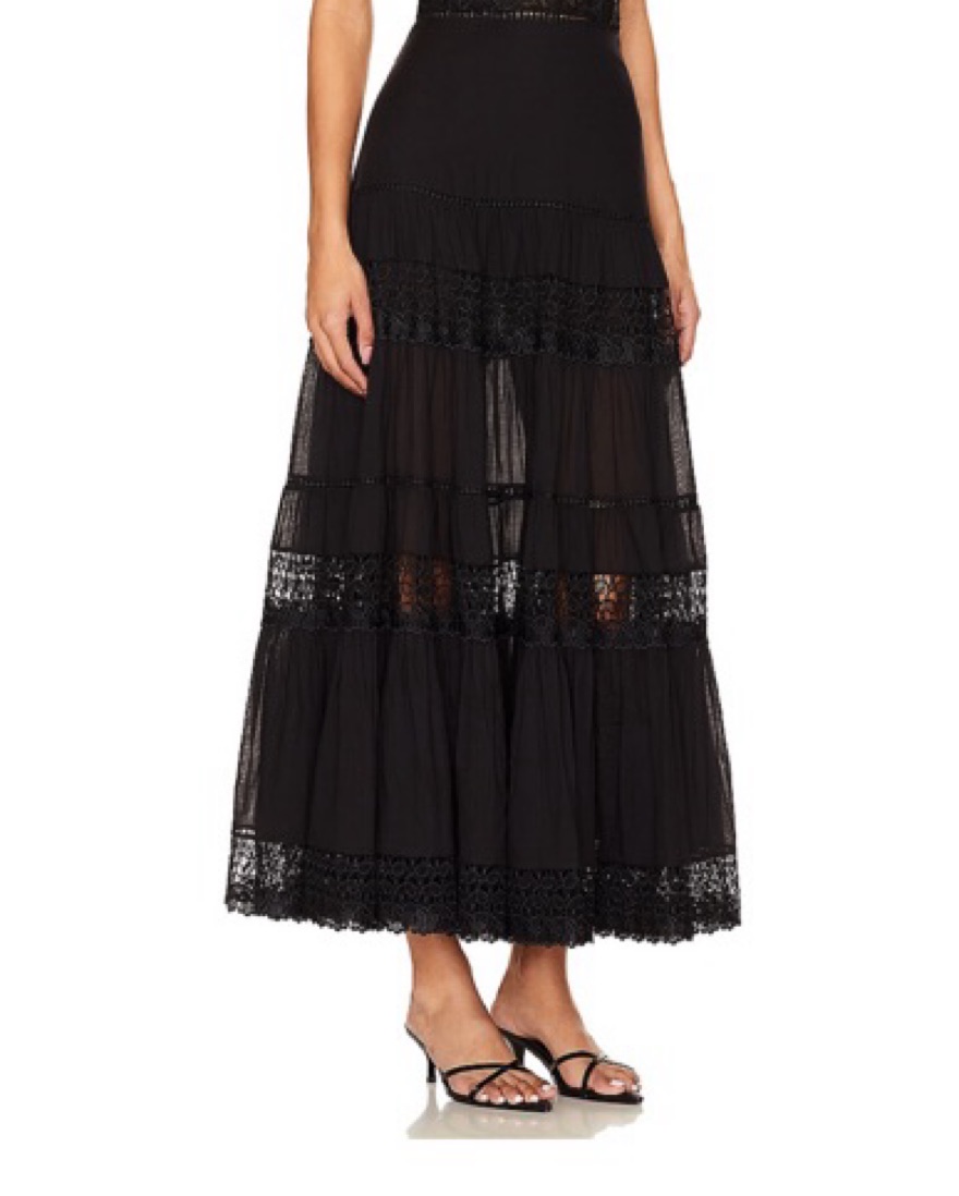 Charo Ruiz Black Lace Silk Maxi Skirt