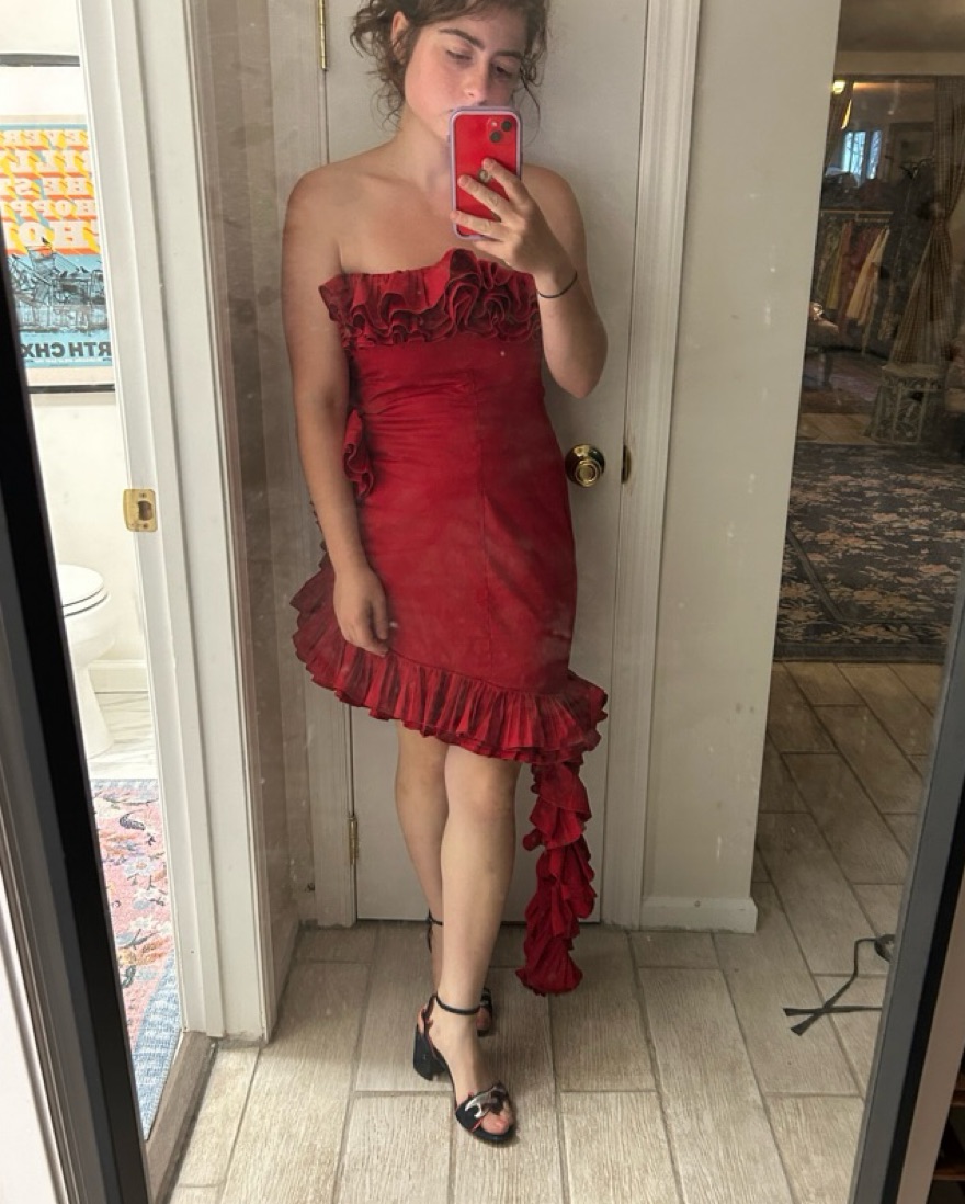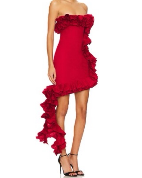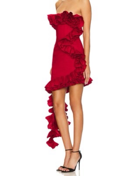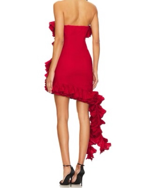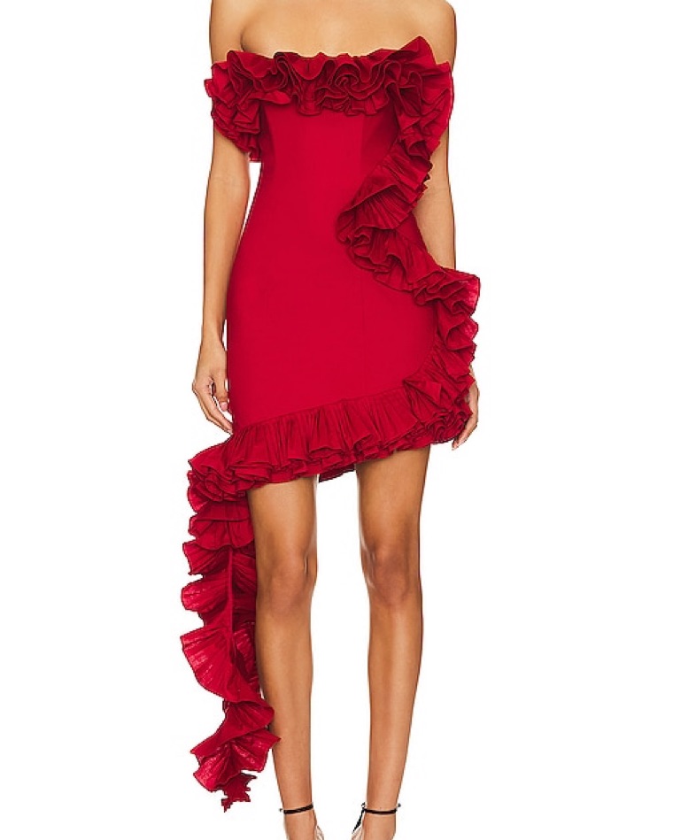 This stunning red mini dress with its dramatic ruffled details and form-fitting silhouette is perfect for making a bold statement at your next special event.