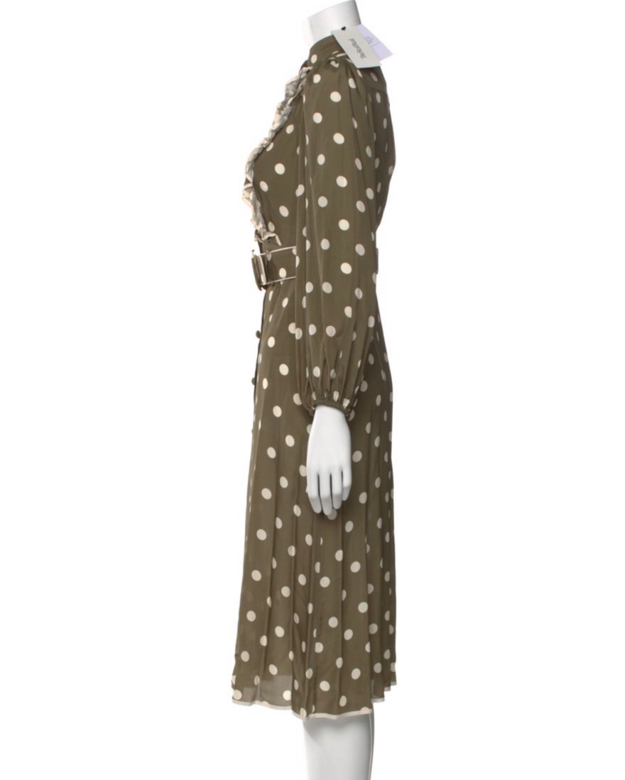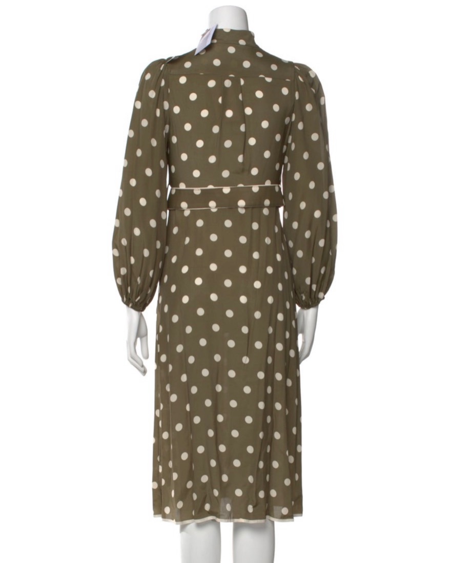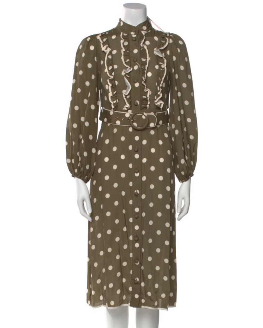Zimmermann Shirtdress • Green • Polka Dot Print • Ruffle Embellishment • Long Sleeve with Mock Neck • Button Closure at Front