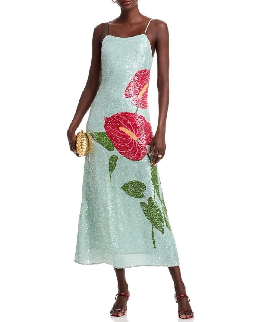Farm Rio Sequin Anthurium Flowers Midi by Farm Rio - Pickle
