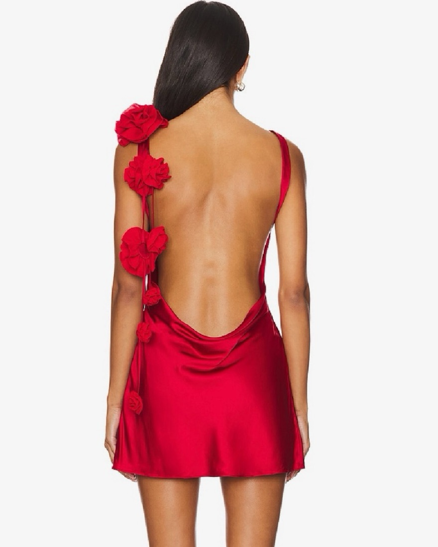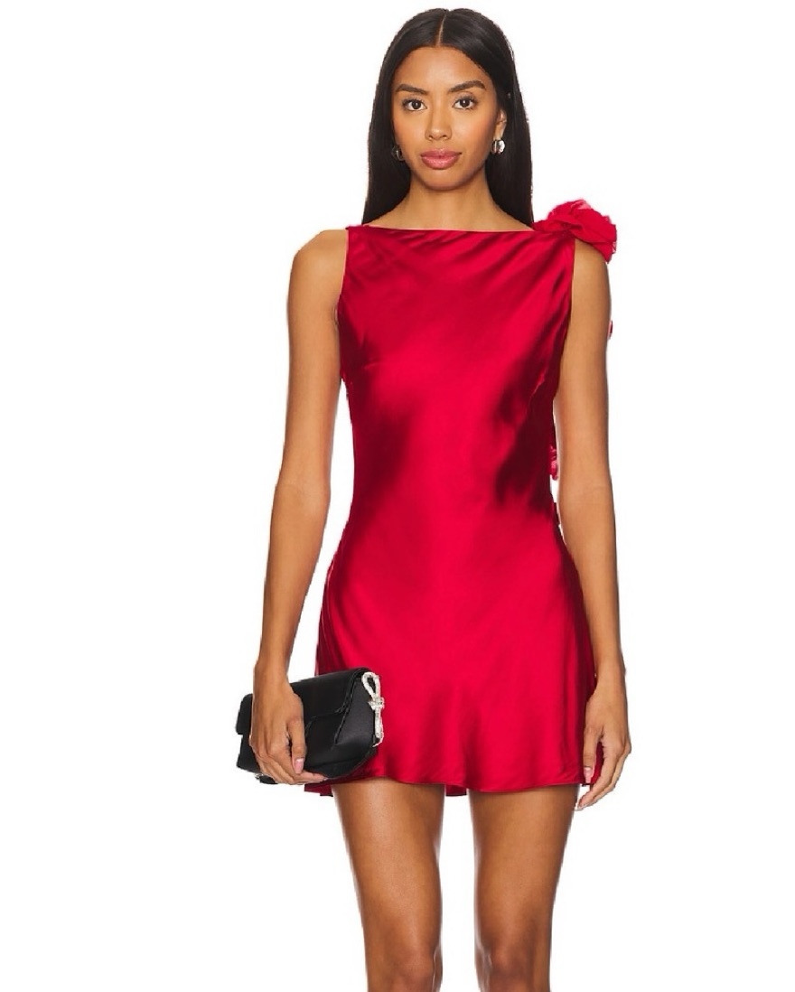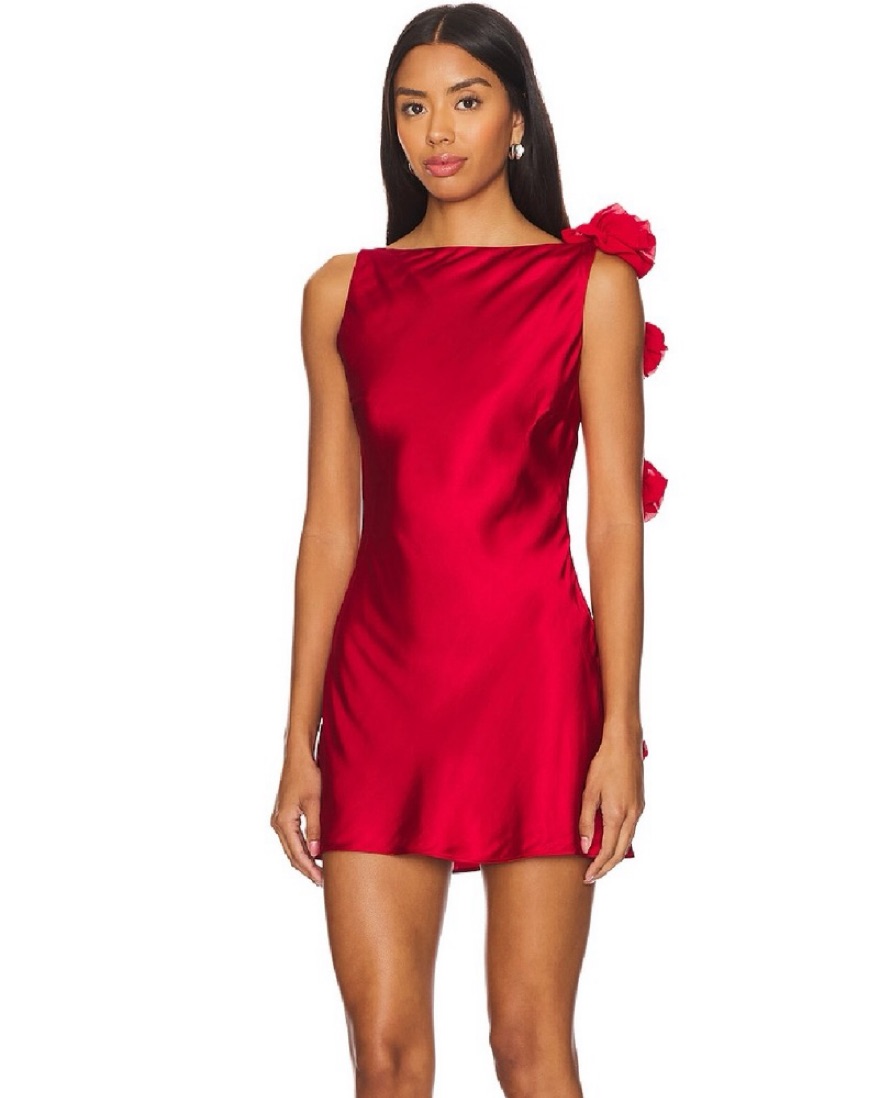 Lovers and friends Mariam mini red satin dress with rose flower details