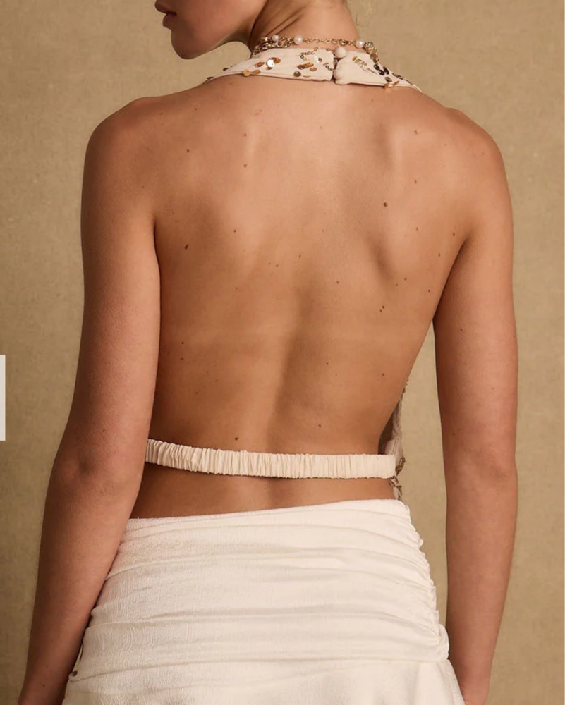 12th Tribe Sunset Ivory Halter Top by 12TH TRIBE - Pickle
