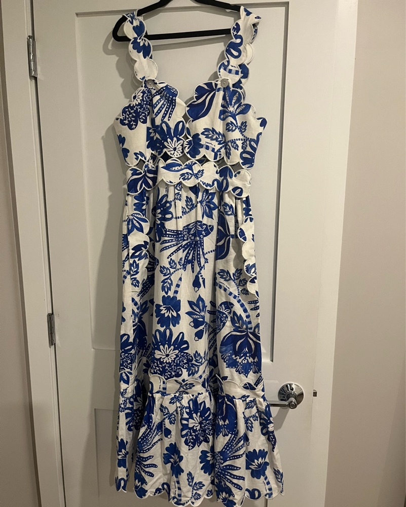 Blue and white midi Farm Rio dress, size small. Great condition