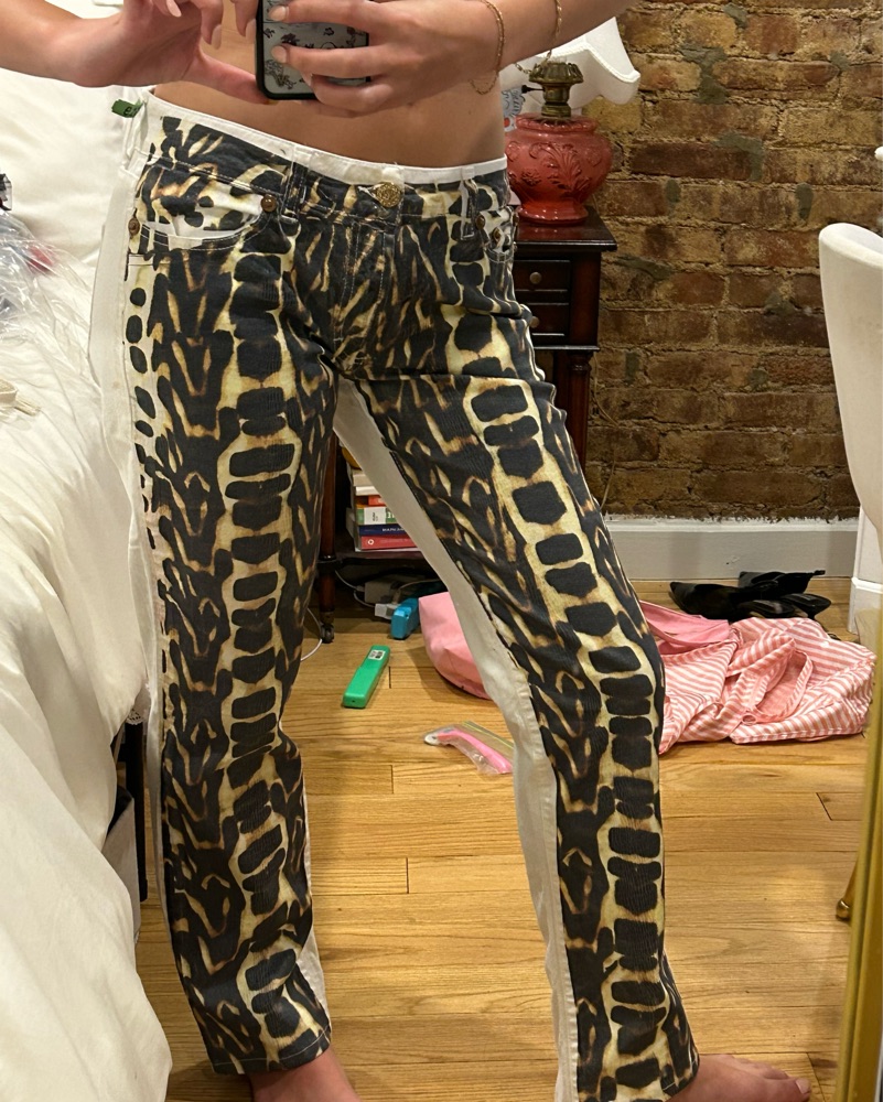 Sick cheetah pants, pattern is only on the front, plain white in the back