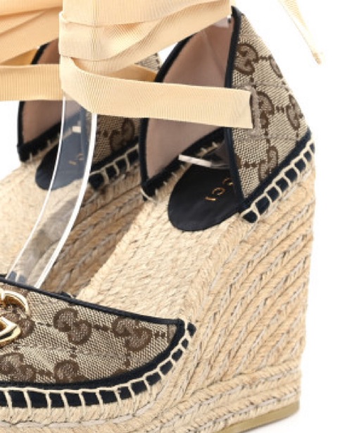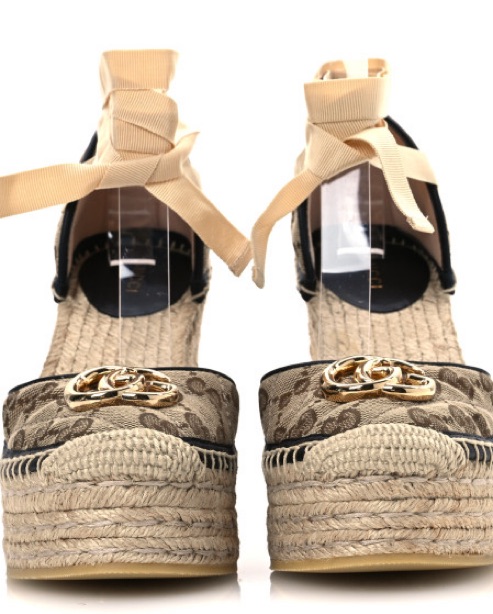 Worn a couple of times - pretty good condition. These are Vintage Gucci platforms with GG monogram on the canvas part of the shoe. Super comfortable it girl lace up heel!