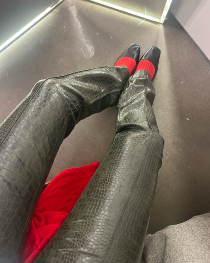 Mango faux snakeskin pants to dress up or down!