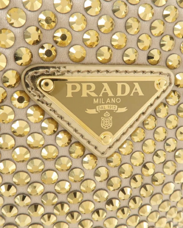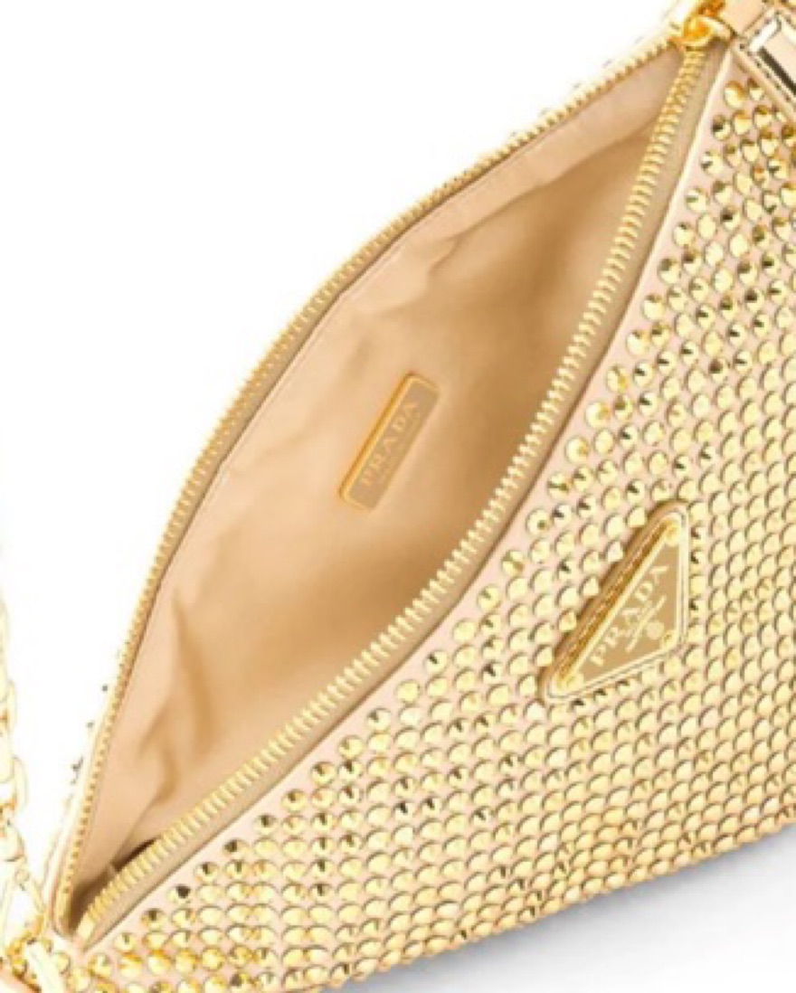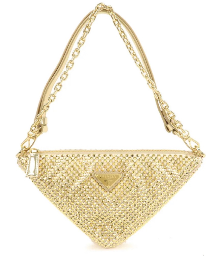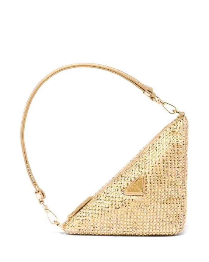 Prada Triangle gold crystal-embellished shoulder bag. Calfskin leather and glass.