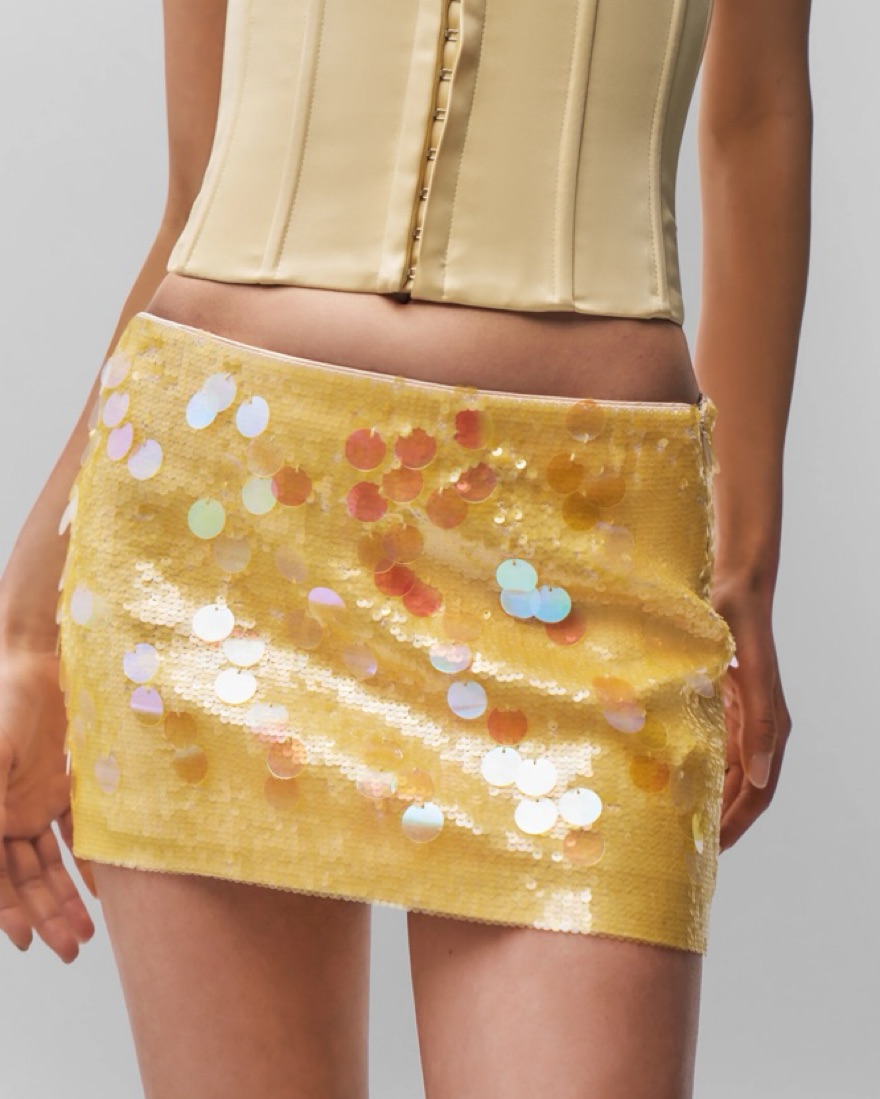 Edikted Yellow Sequin Mini Skirt by Edikted - Pickle