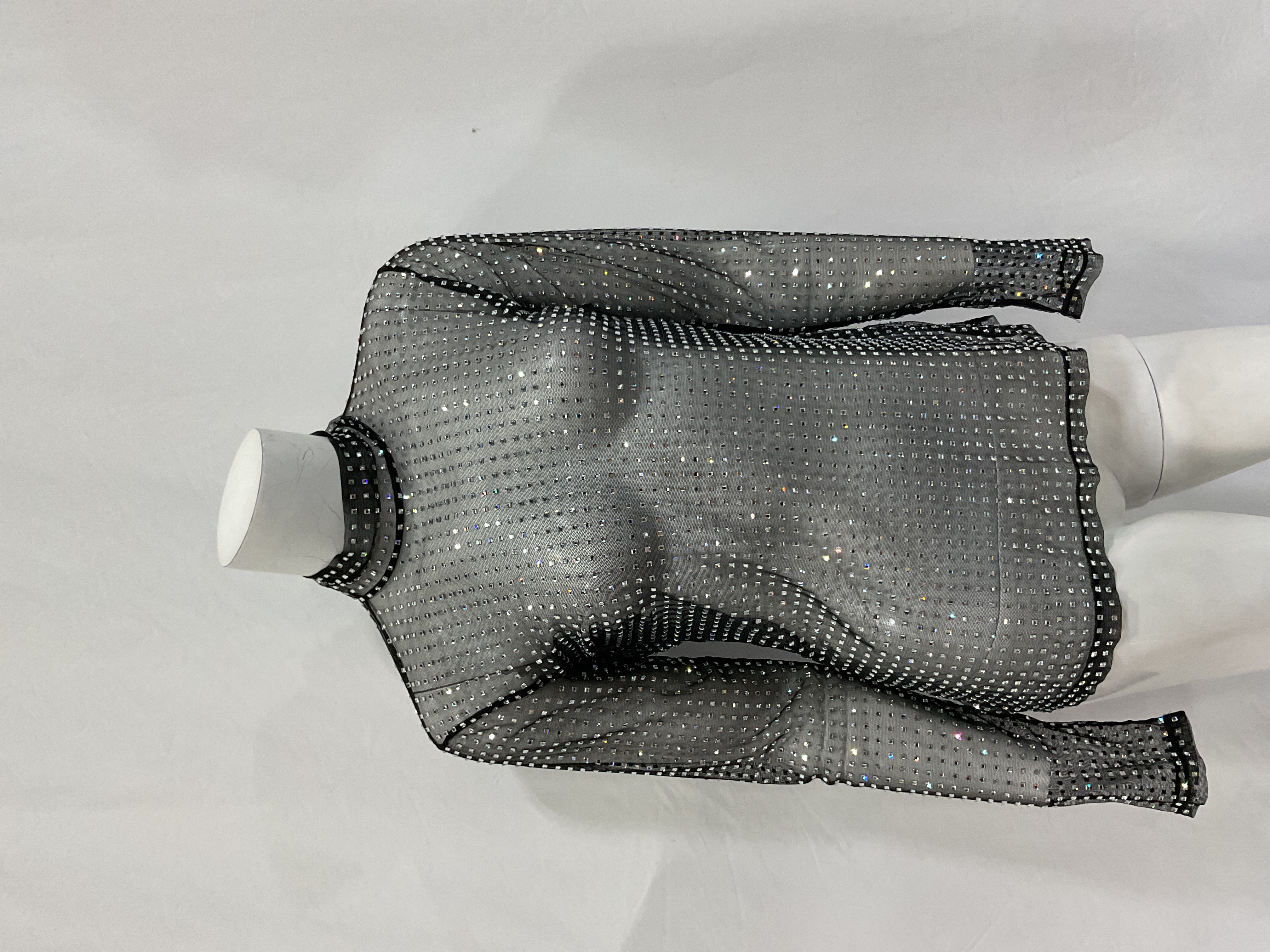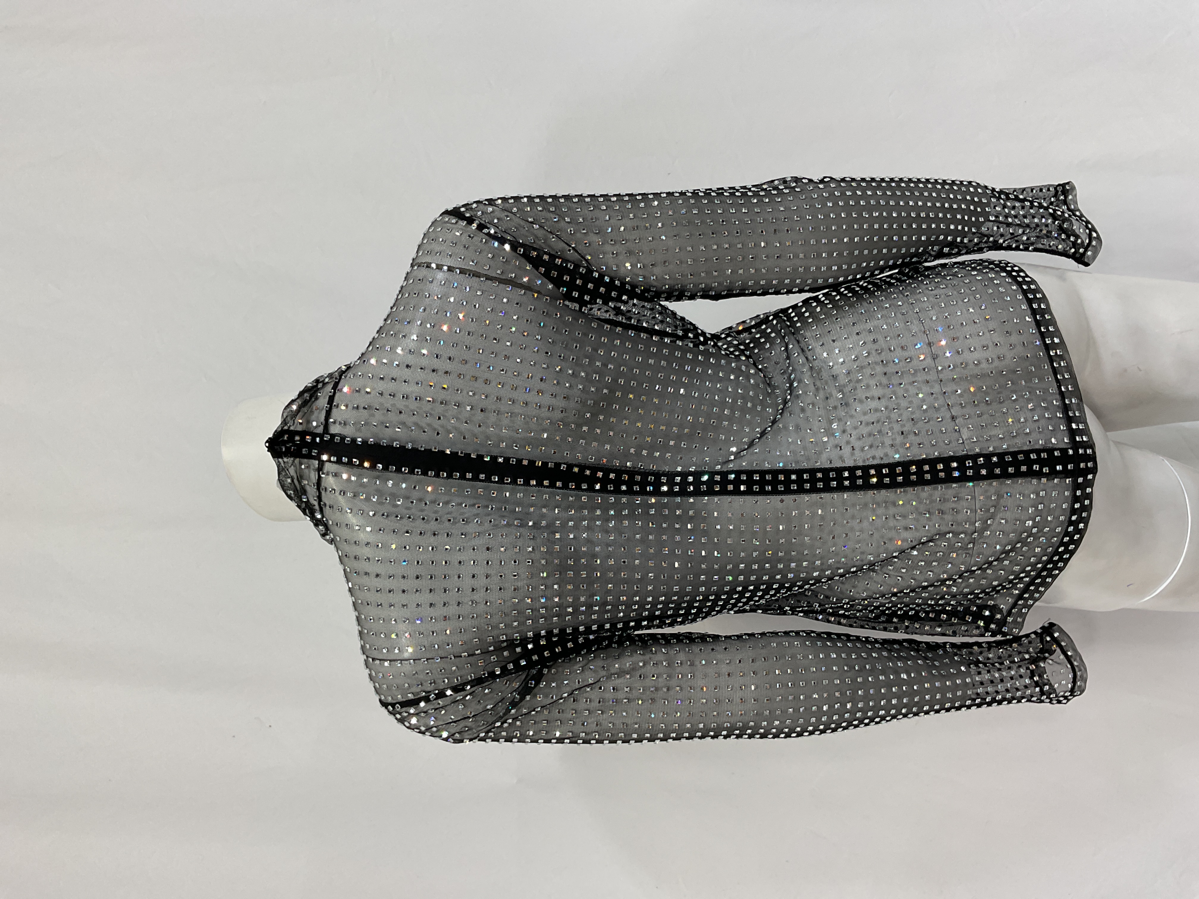 Metallic silver threading adds just the right amount of sparkle to this sleek black top. Perfect for elevating your evening look or adding edge to denim.