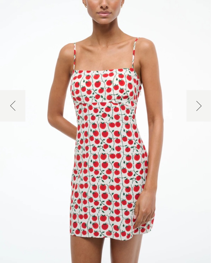 This charming mini dress features a vibrant 🍅 print that's perfect for a day of shopping or a date night. Staud Roma on the vine dress 🌱🇮🇹