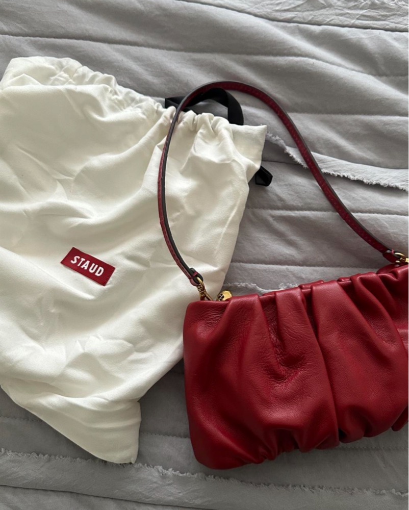 STAUD Bean Bag - Scarlet 100% leather Dimensions: Width: 22.5cm, Height: 10.5cm, Depth: 6.5cm, Strap: 22.5cm