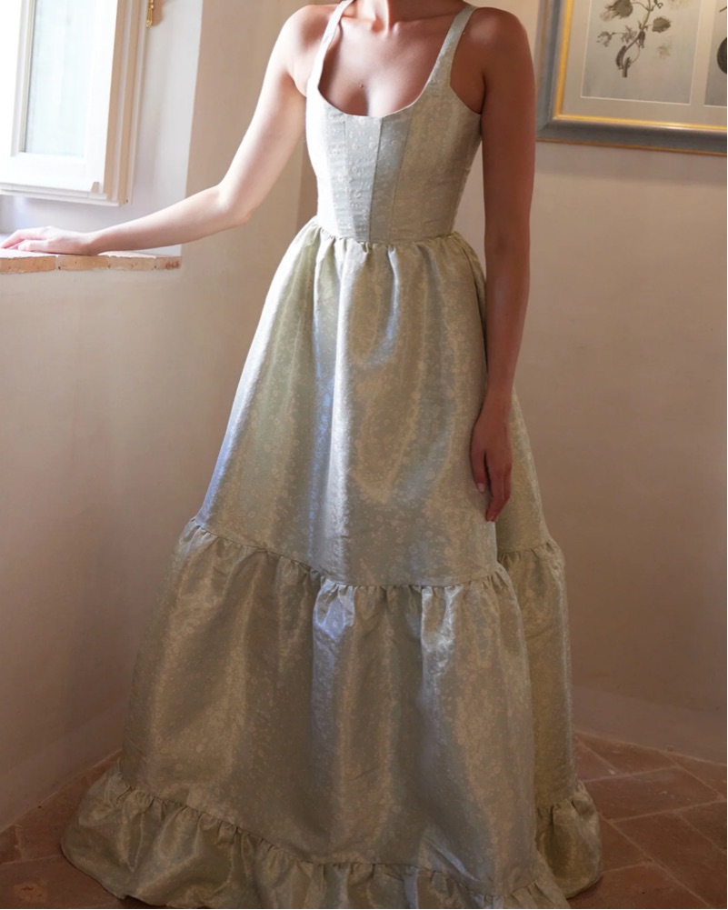 V Chapman Avery Dress In Sage Duchess by V Chapman - Pickle