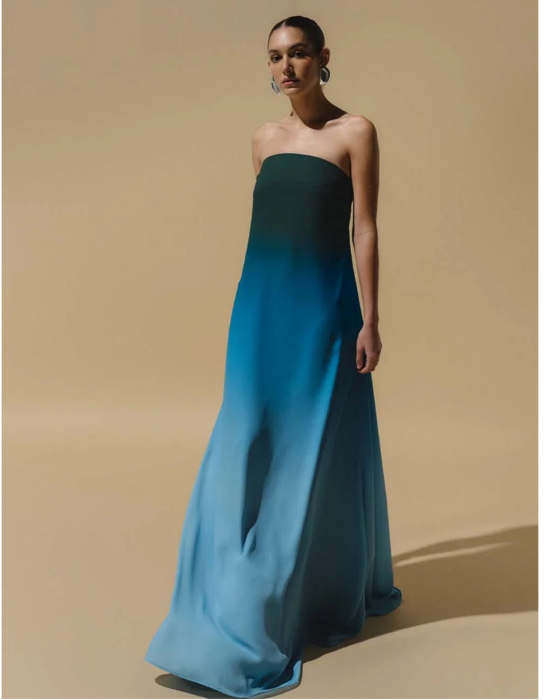 Ombre blue maxi dress, strapless