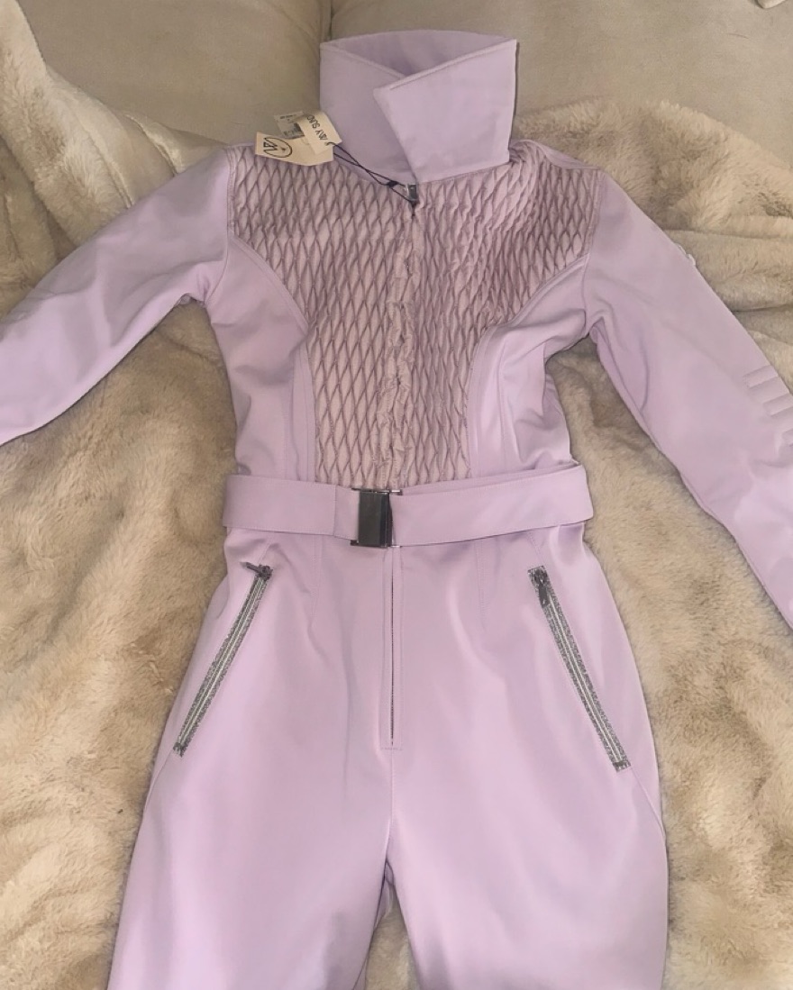 Lilac. Keeps you warm ! Suit is fitted Waterproof - 10K rating