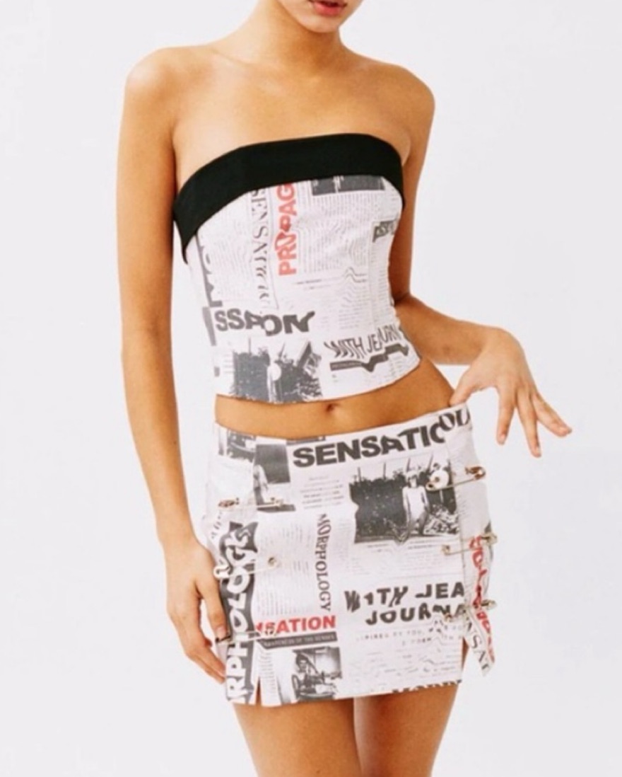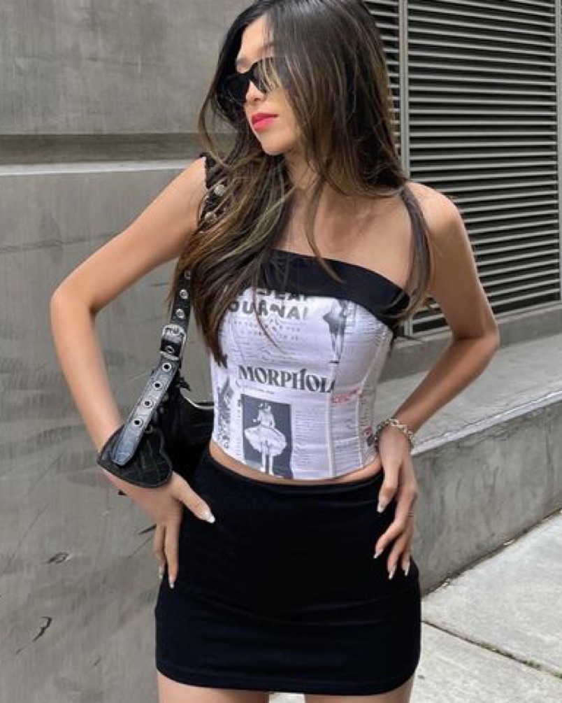 Corset top, style was “read all about it”. Size xS, fits true to size - I have the whole set if you want to rent out both, it’s in another listing :) I also have it in a size small!