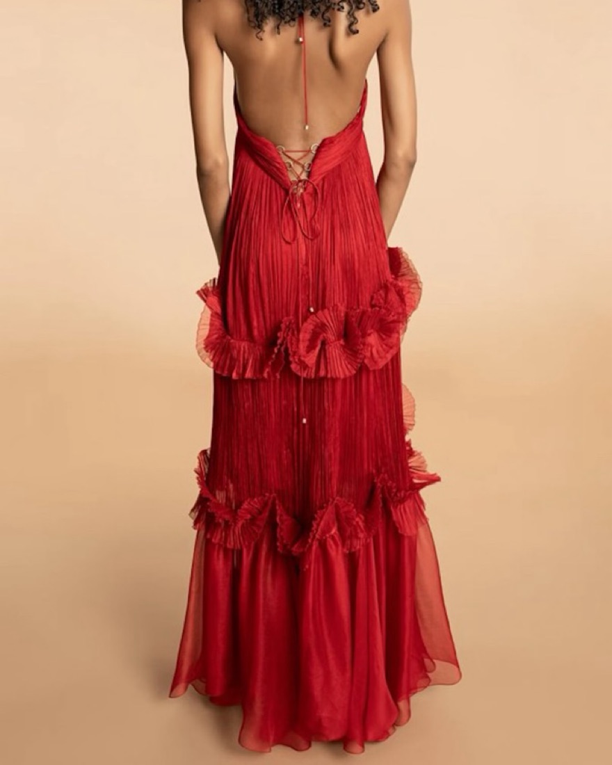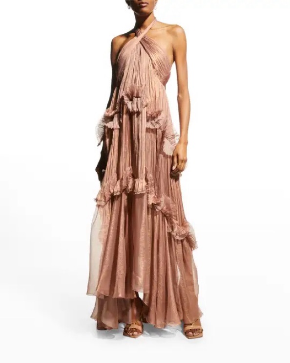 This stunning maxi dress is perfect for weddings, black tie and formal events or special occasions. The intricate pleating and flowy silhouette create a sophisticated and glamorous look. Worn once, amazing dress and fit.