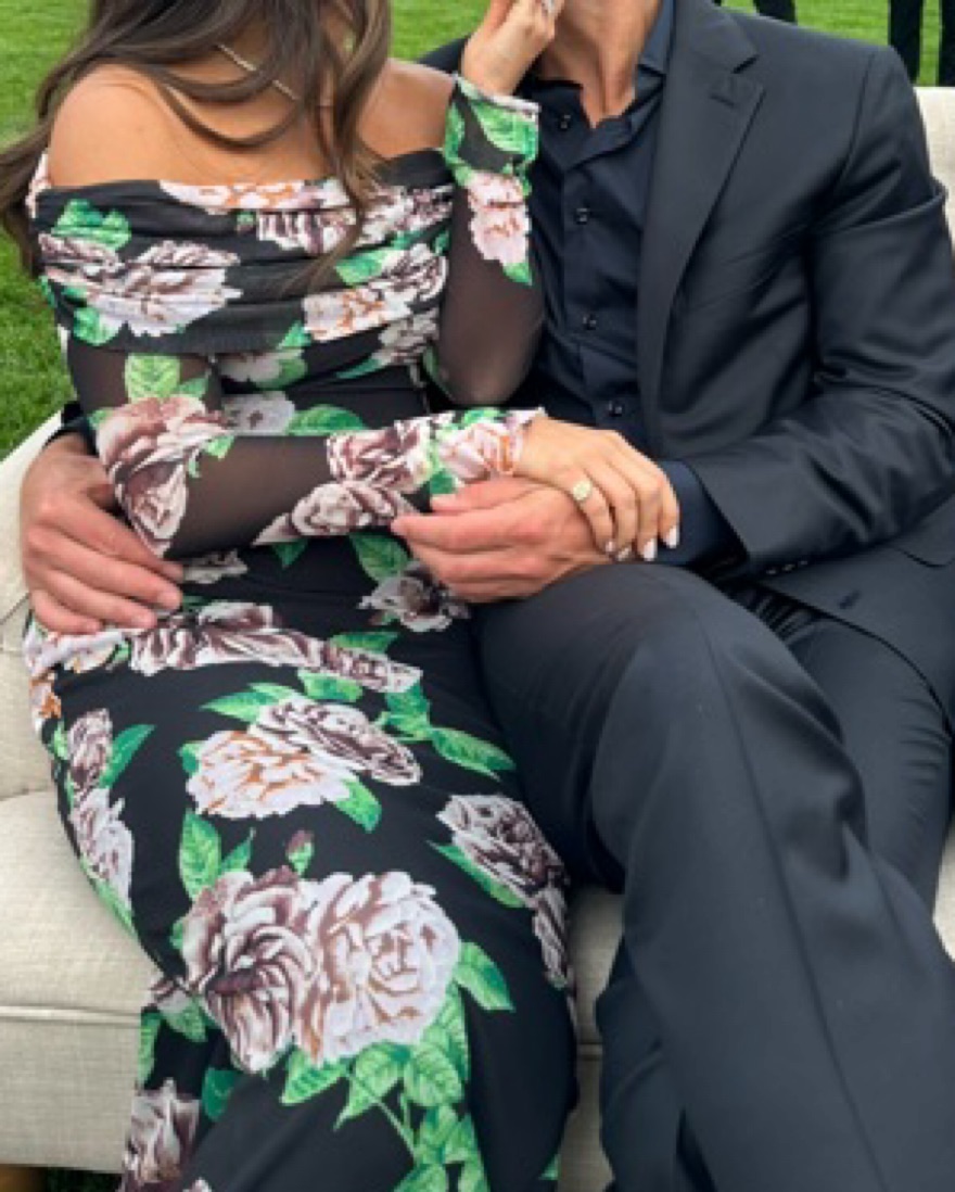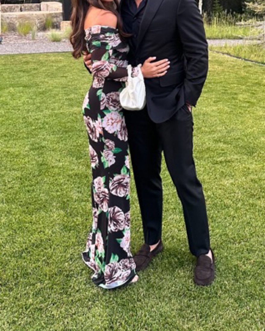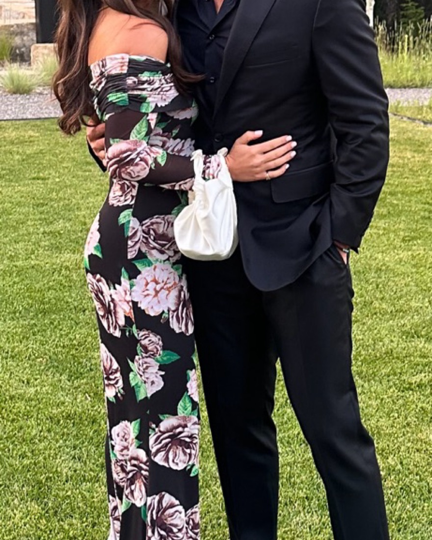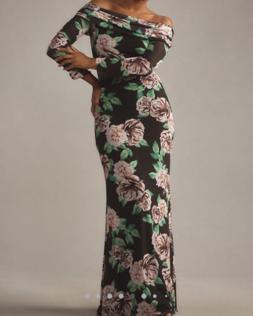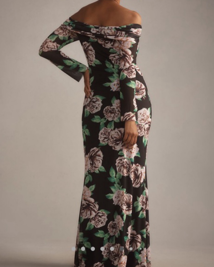 AFRM XS Long Sleeve Off the Shoulder Maxi Dress in Black Floral