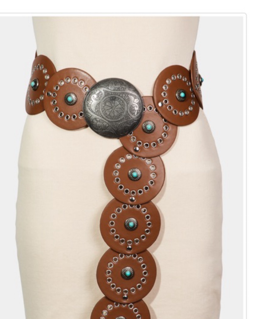 Brown Turquoise Festival Belt + hat by Unbranded - Pickle