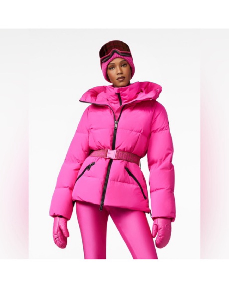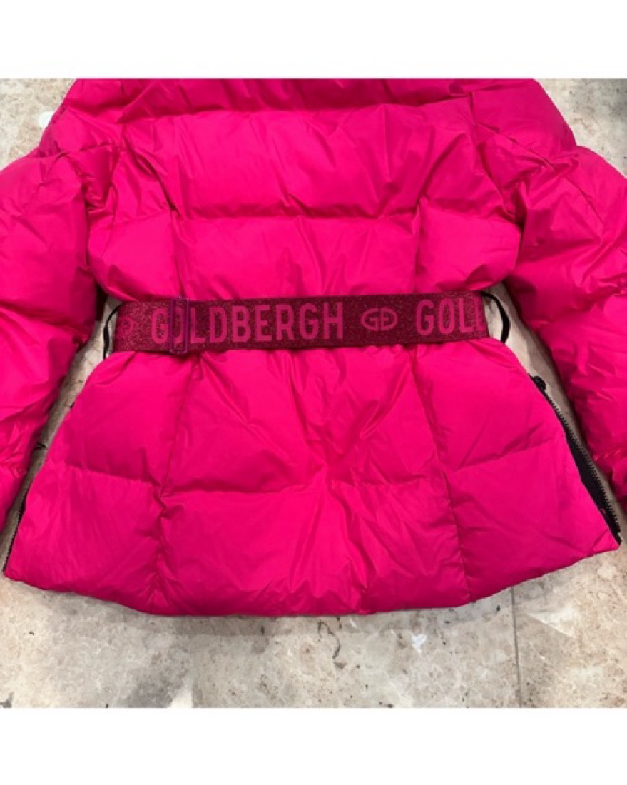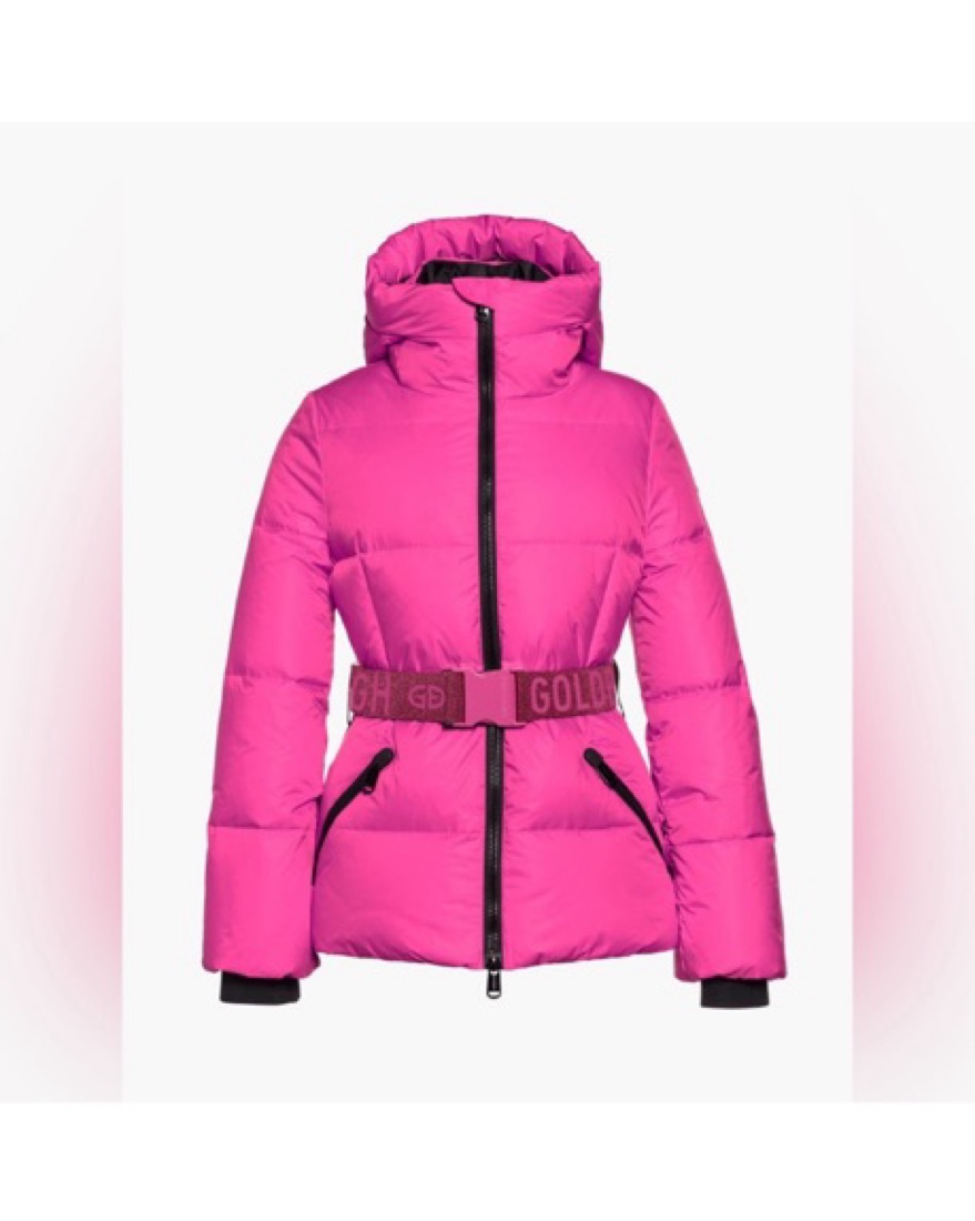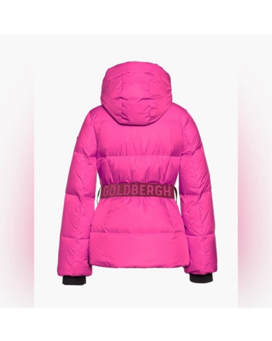 Hot pink new Goldberg ski jacket with hood and glitter waist belt. US size 10