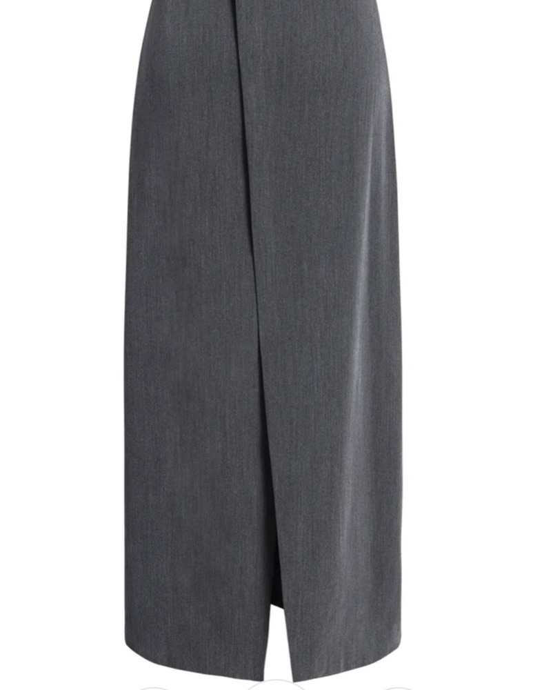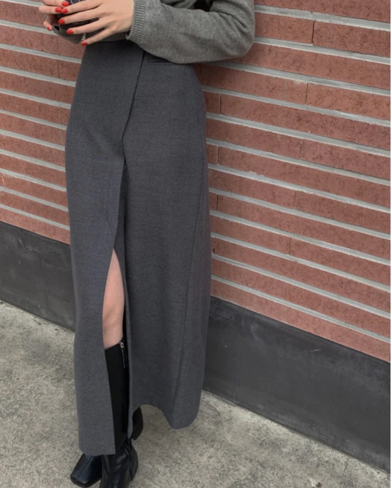 This elegant gray maxi skirt is the perfect addition to your wardrobe. Pair it with a cropped sweater for a chic daytime look or a silk camisole for a sophisticated evening ensemble.
