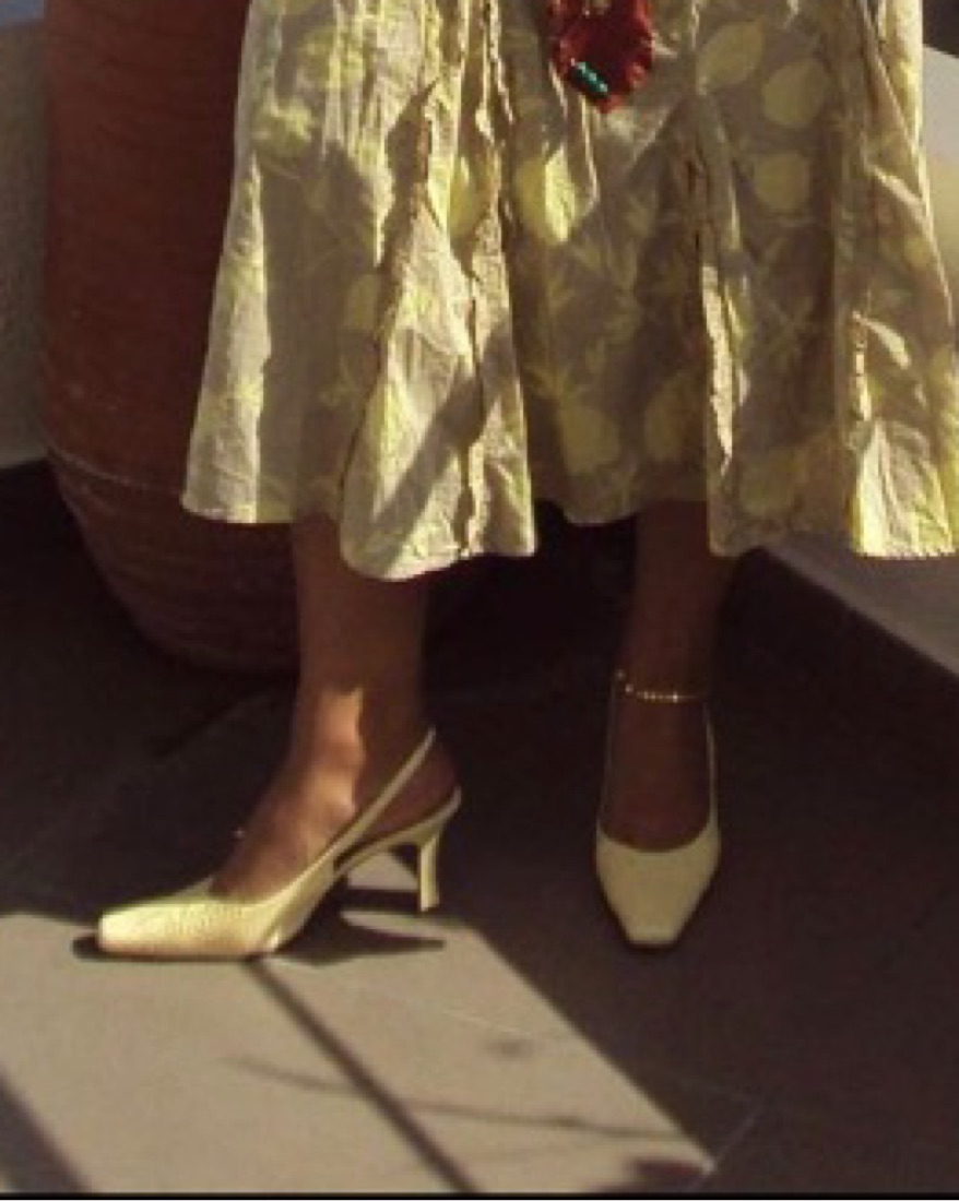 light yellow strappy kitten heel