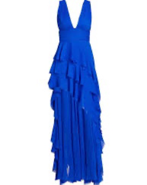Alice + Olivia Holly Ruffled High-Low Maxi Dress In Sapphire size 6 - perfect for a wedding or any formal event