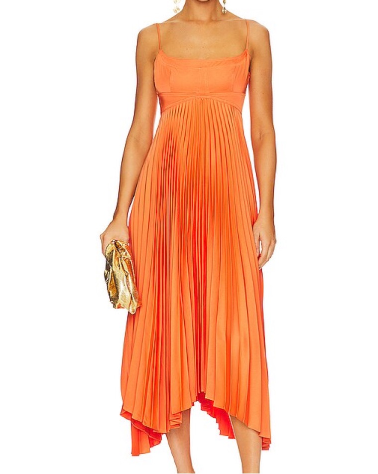 A.L.C. Women's Orange Hollie Pleated Empire-Waist Midi Dress Size 8. In perfect condition, worn once and dry cleaned!
