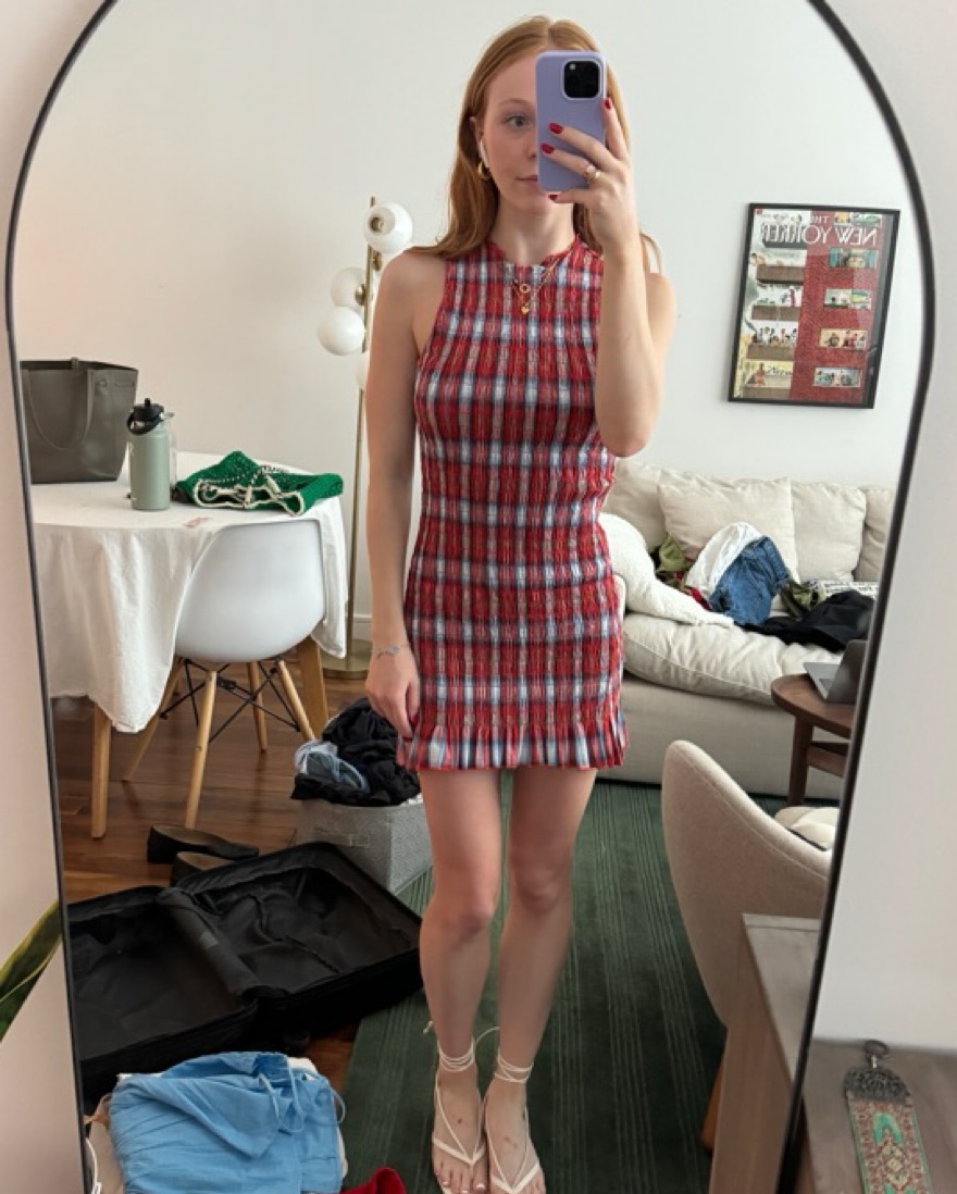 Cosmo ruched cotton dress in red/white/blue. Very flattering