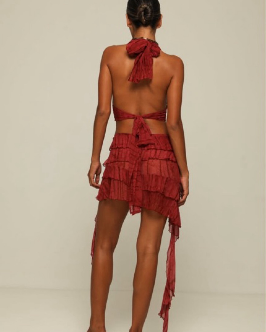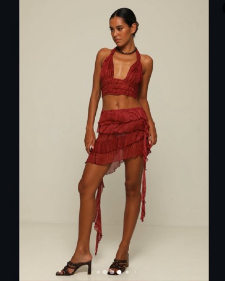 Ranaco Atelier Hibiscus top and ruffle skirt . App percent silk made in Bali. Fun and flirty for vacation + hot summer nights out
