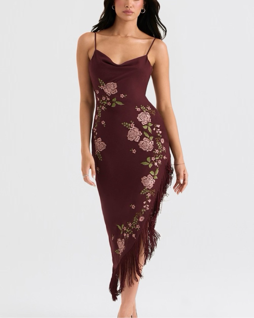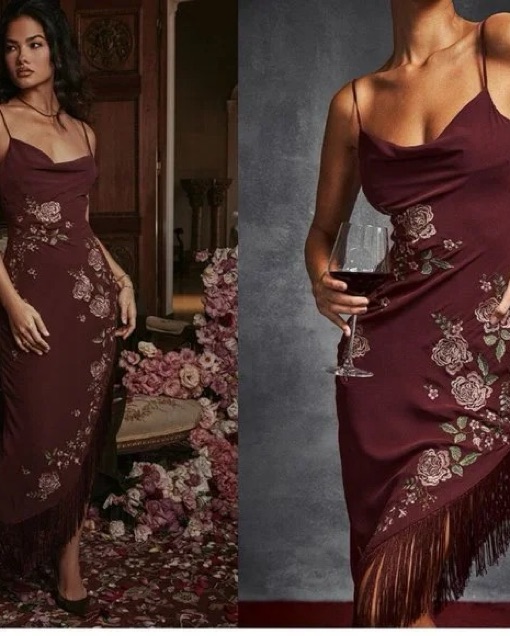 Extra special embroidery detailing make 'Eloisa' a very special dress for elevated occasions. It has a zip to the left side for easy on and is suitable for any bust size as it has no cups. Very good condition