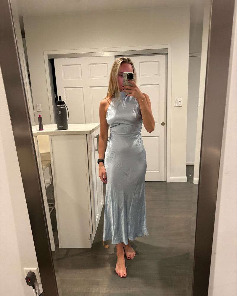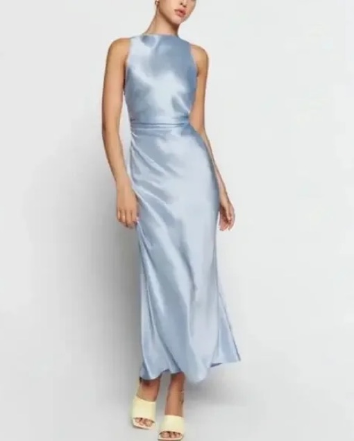 Reformation Casette Silk Dress In Blue by Reformation - Pickle
